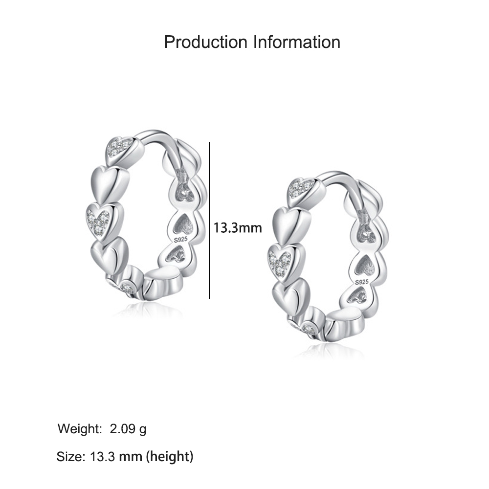 Delicate yet dazzling, these 925 sterling silver heart-shaped hoop earrings combine sweetness with sparkle. Each polished silver hoop is accented with tiny micro-pavé cubic zirconia set in heart motifs, creating a refined shimmer that enhances any look. Lightweight and hypoallergenic, these earrings are perfect for everyday wear or as a thoughtful gift symbolizing love and affection. Crafted with rhodium-plated sterling silver for a brilliant, long-lasting shine.