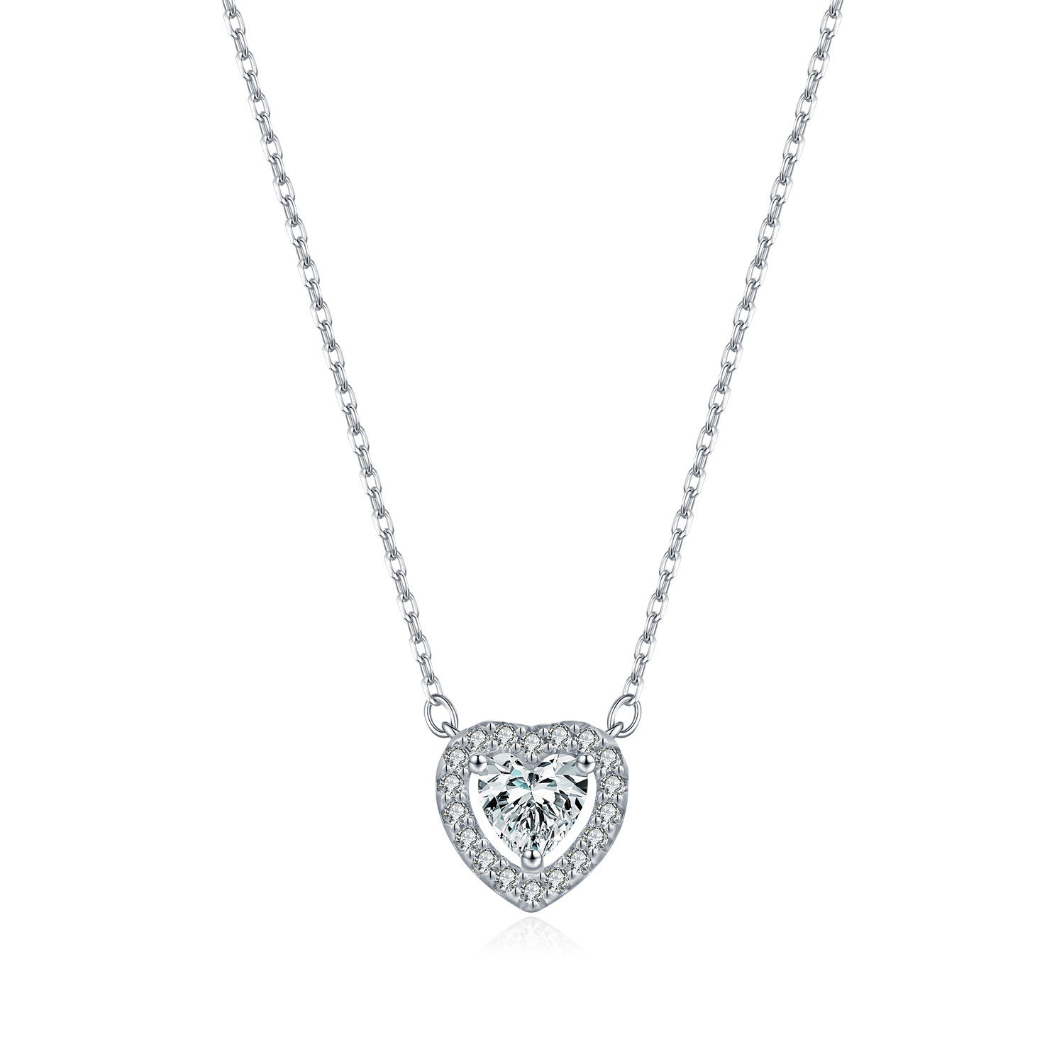 925 Sterling Silver Heart Halo Moissanite Pendant Necklace 110300029 - image1925 Sterling Silver Heart Halo Moissanite Pendant Necklace 110300029 - image2