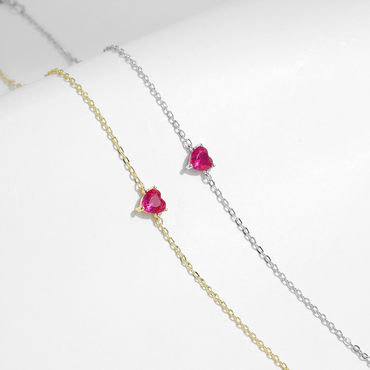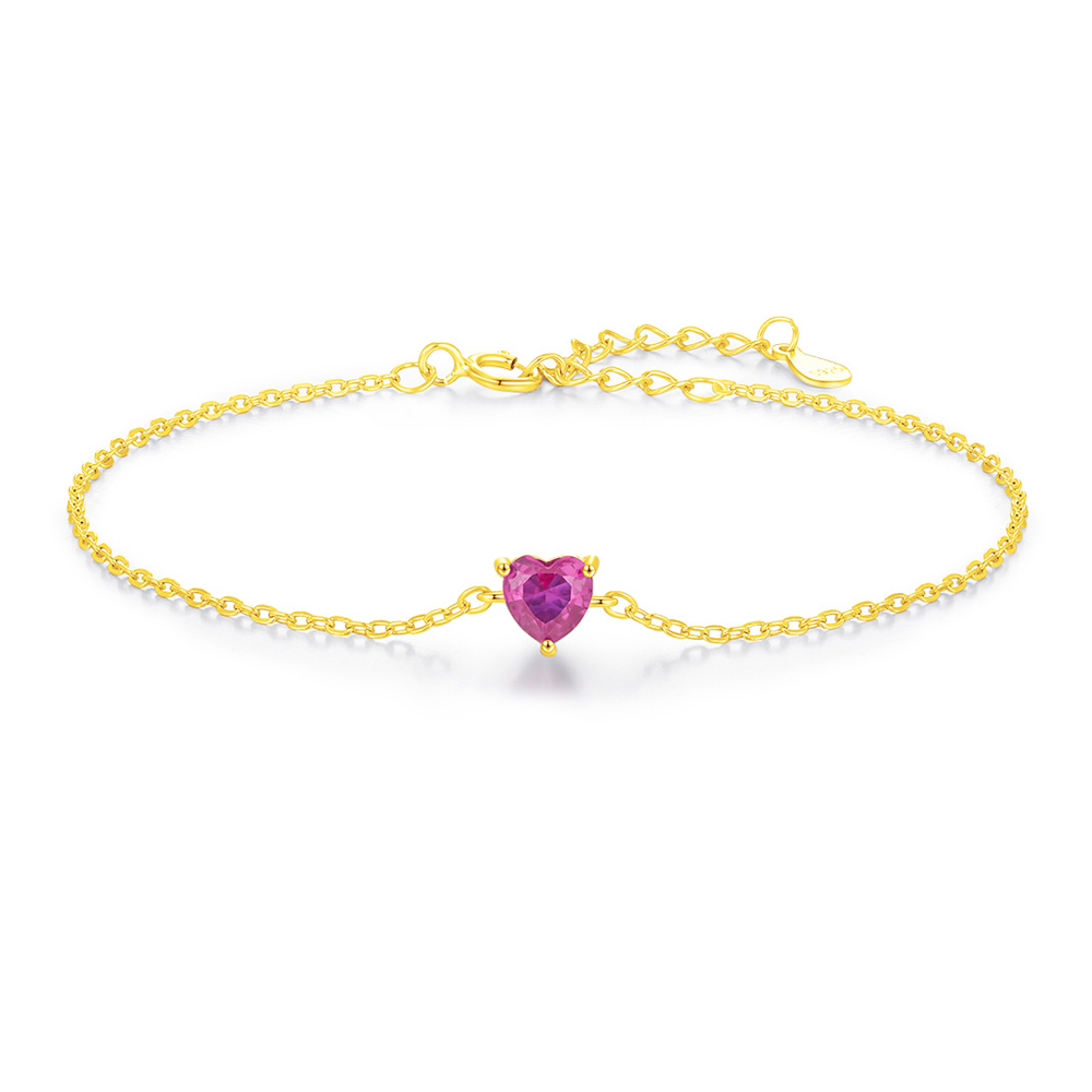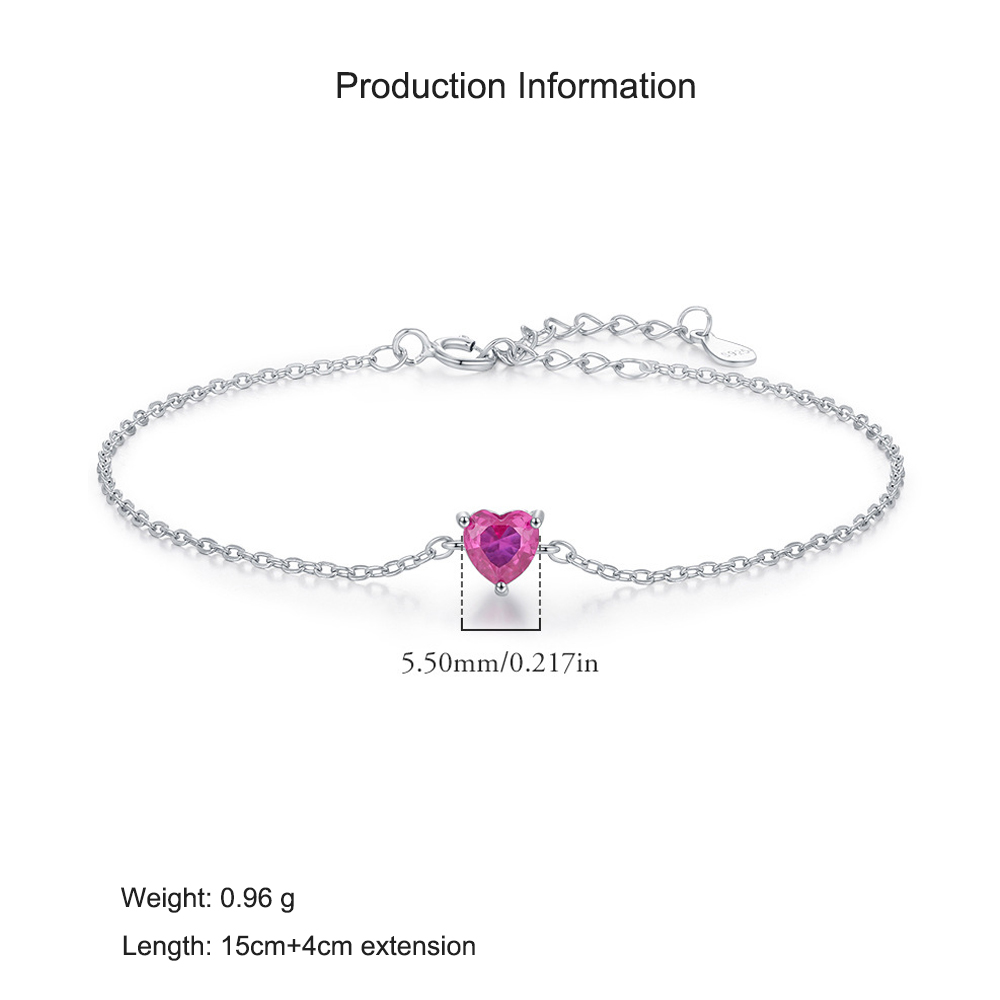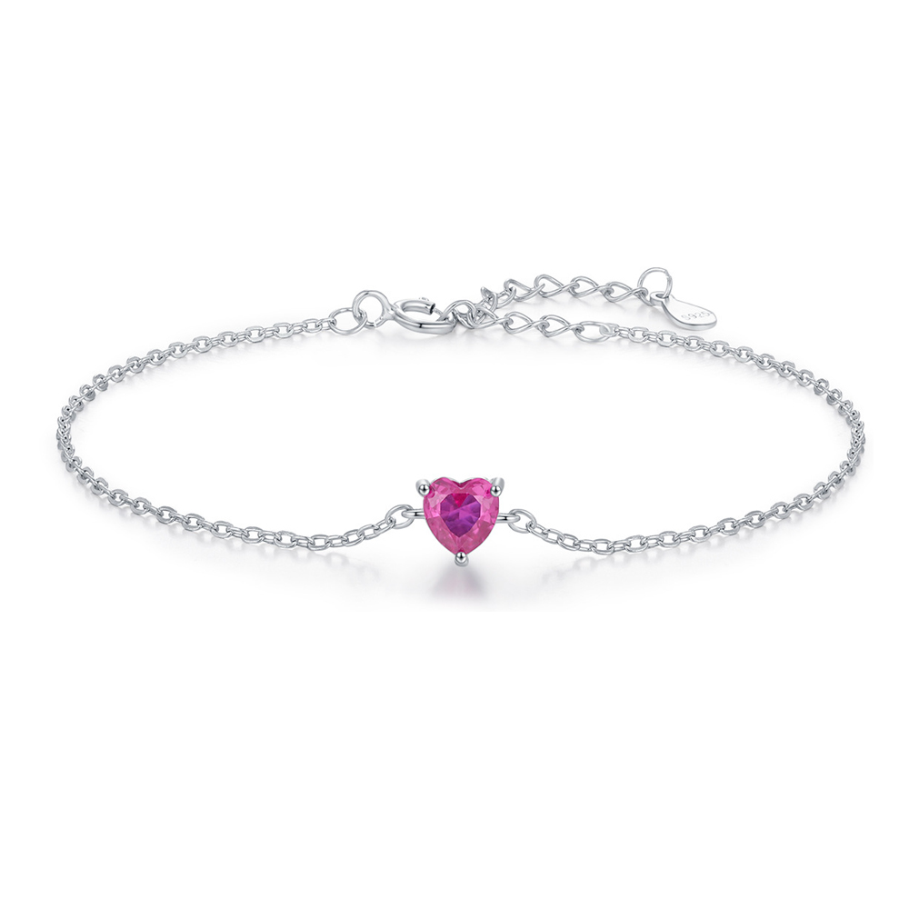 Show your love with this elegant 925 sterling silver bracelet featuring a vivid heart-shaped hot pink cubic zirconia at its center. The fine cable chain enhances the gemstone's brilliance while keeping the overall design minimalist and graceful. Perfect for romantic gifting, daily wear, or stacking with other bracelets, this piece adds a subtle yet striking pop of color to any outfit. Adjustable length for a comfortable fit.