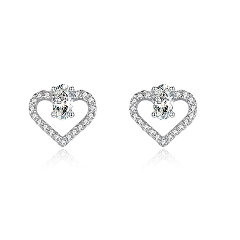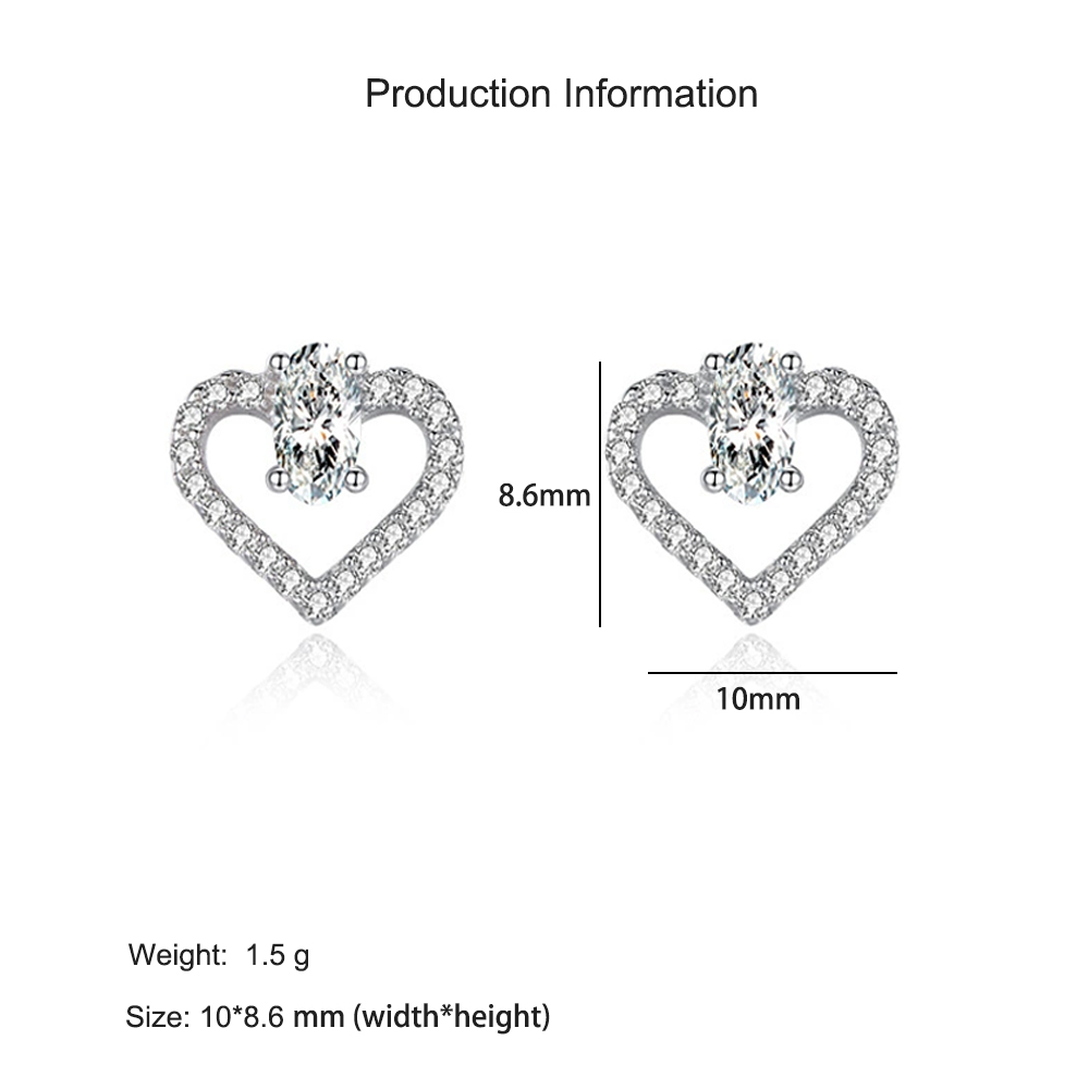 These elegant 925 sterling silver heart-shaped stud earrings capture the essence of romance and sophistication. Each earring features a brilliant oval-cut zircon set atop a sparkling open heart design, creating a timeless symbol of love and grace. Lightweight and comfortable to wear, these earrings add a touch of glamour to both everyday outfits and special occasions. Perfect for gifting or self-adornment, they bring brilliance and warmth to any look.