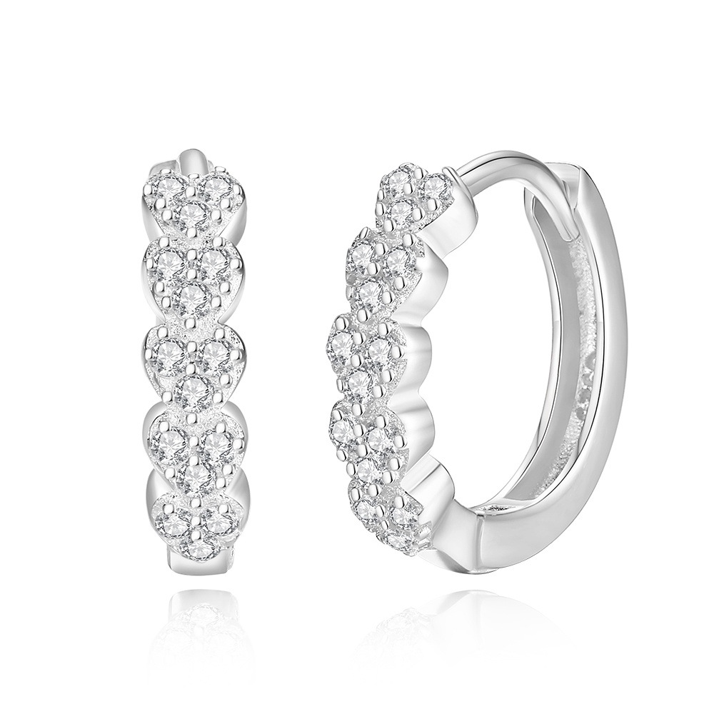 925 Sterling Silver Heart Zirconia Hoop Earring 60200257