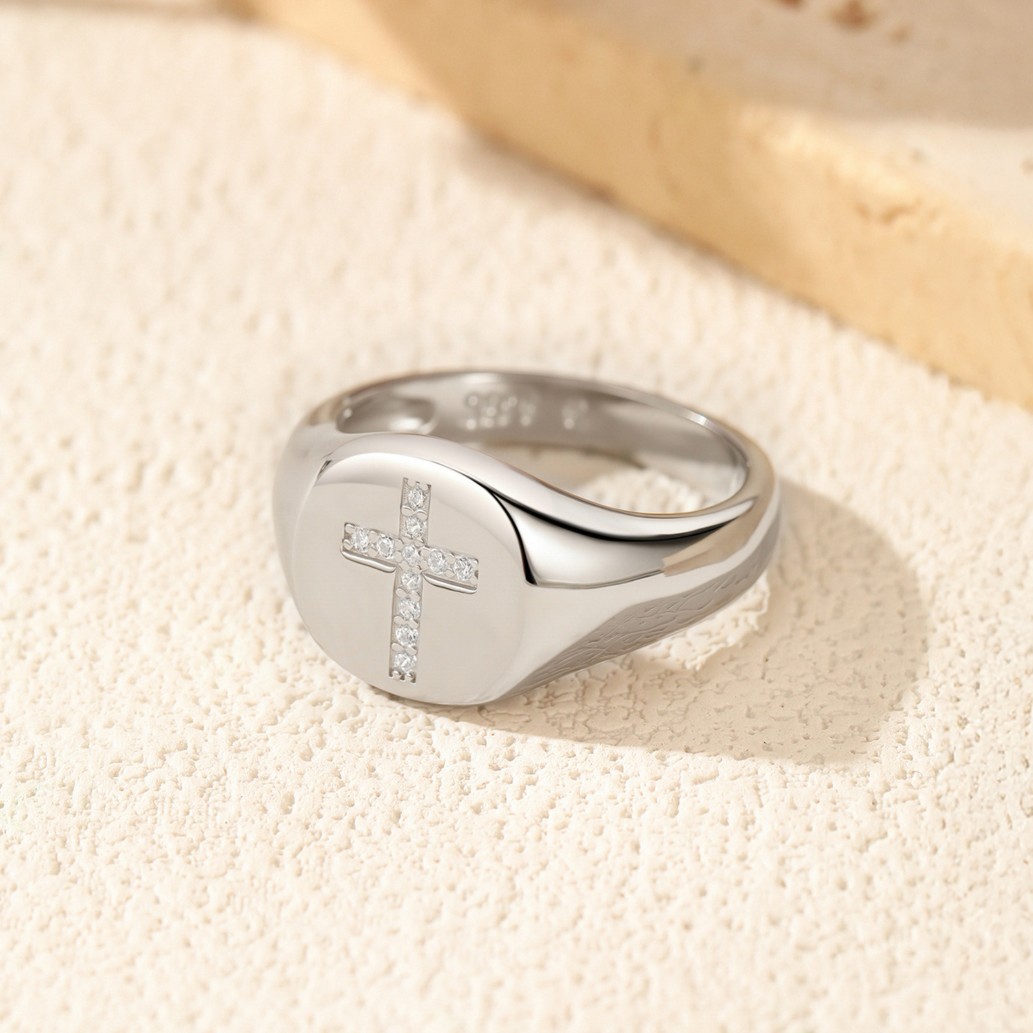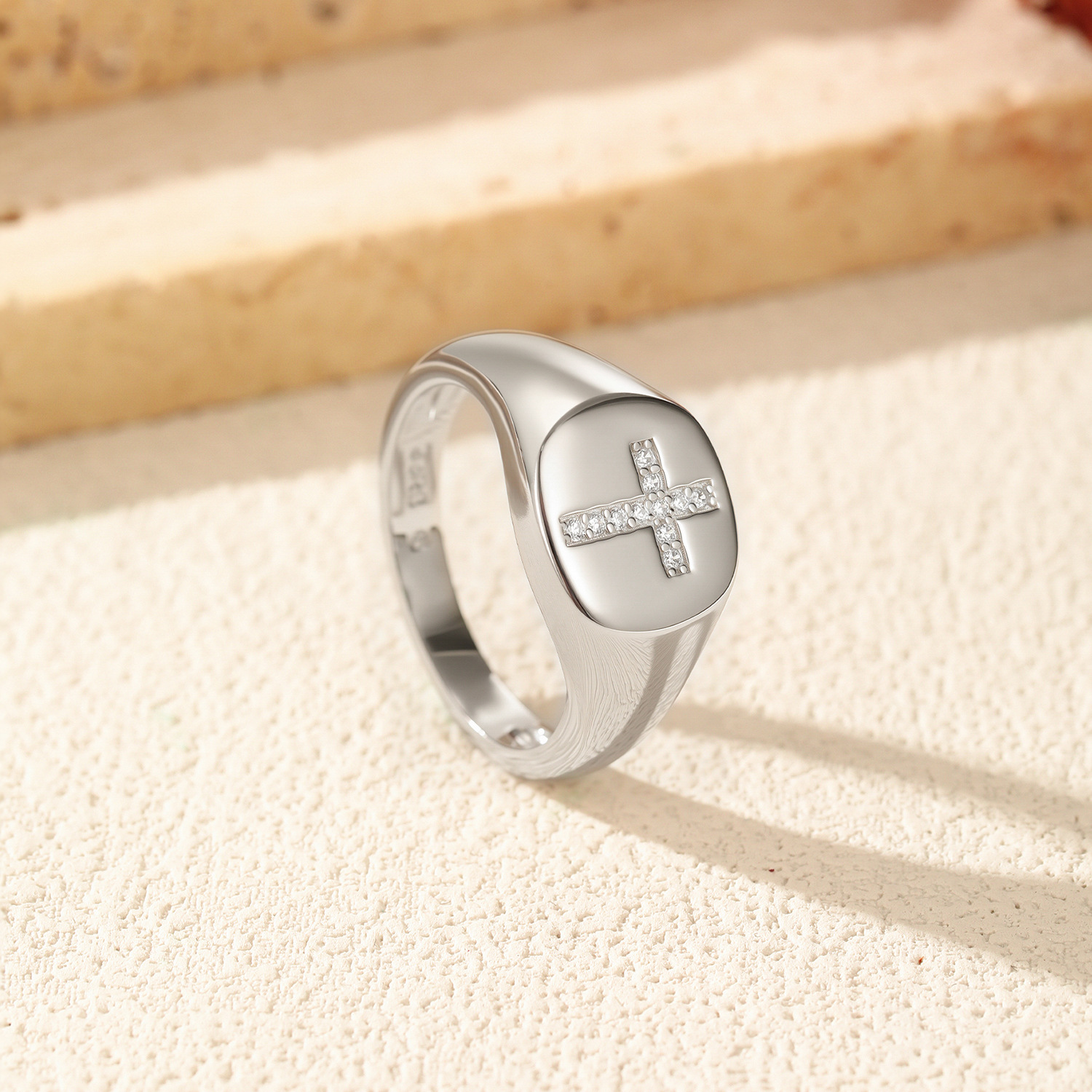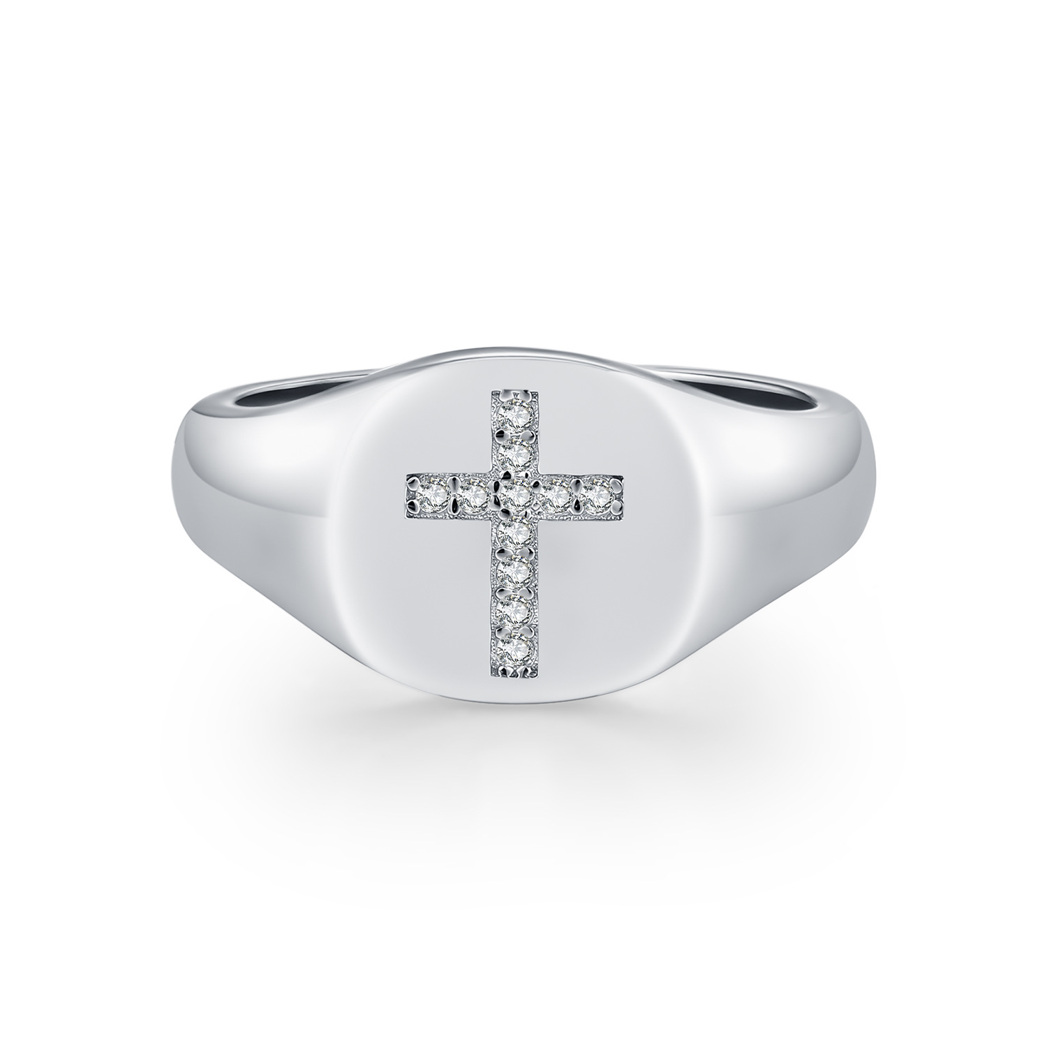 Capitalize on the resurgence of classic men's and unisex jewelry with our Wholesale 925 Sterling Silver Hip Hop Moissanite Cross Signet Ring. The "Signet Ring" silhouette is a top trending category in fashion jewelry. This SKU features a "Polished/Light Surface" (光面) finish contrasted by a "Cross" (十字架) pave set with high-quality Moissanite. This combination appeals strongly to the "Hip Hop" and urban streetwear markets. Manufactured from solid S925 silver, this ring offers the weight and durability customers expect from premium demi-fine jewelry.
