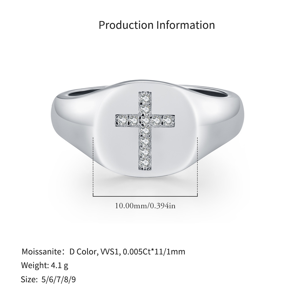 925 Sterling Silver Hip Hop Moissanite Cross Signet Ring 110200060