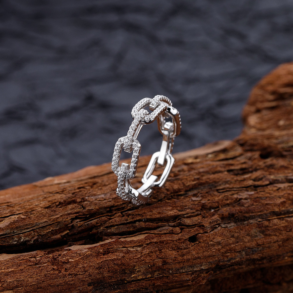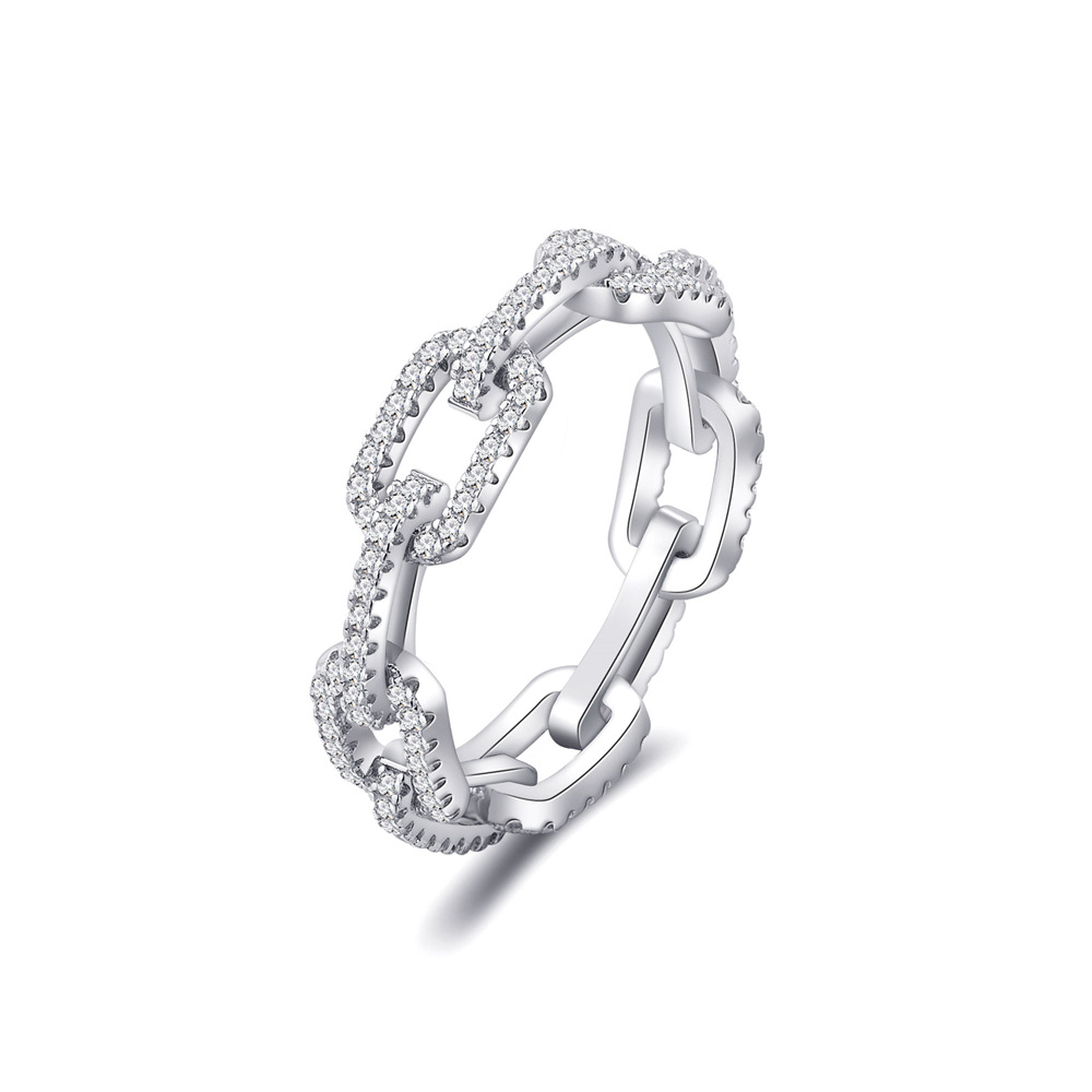 Product: Wholesale 925 Sterling Silver Linked Chain Zirconia Band Ring 70100279.
