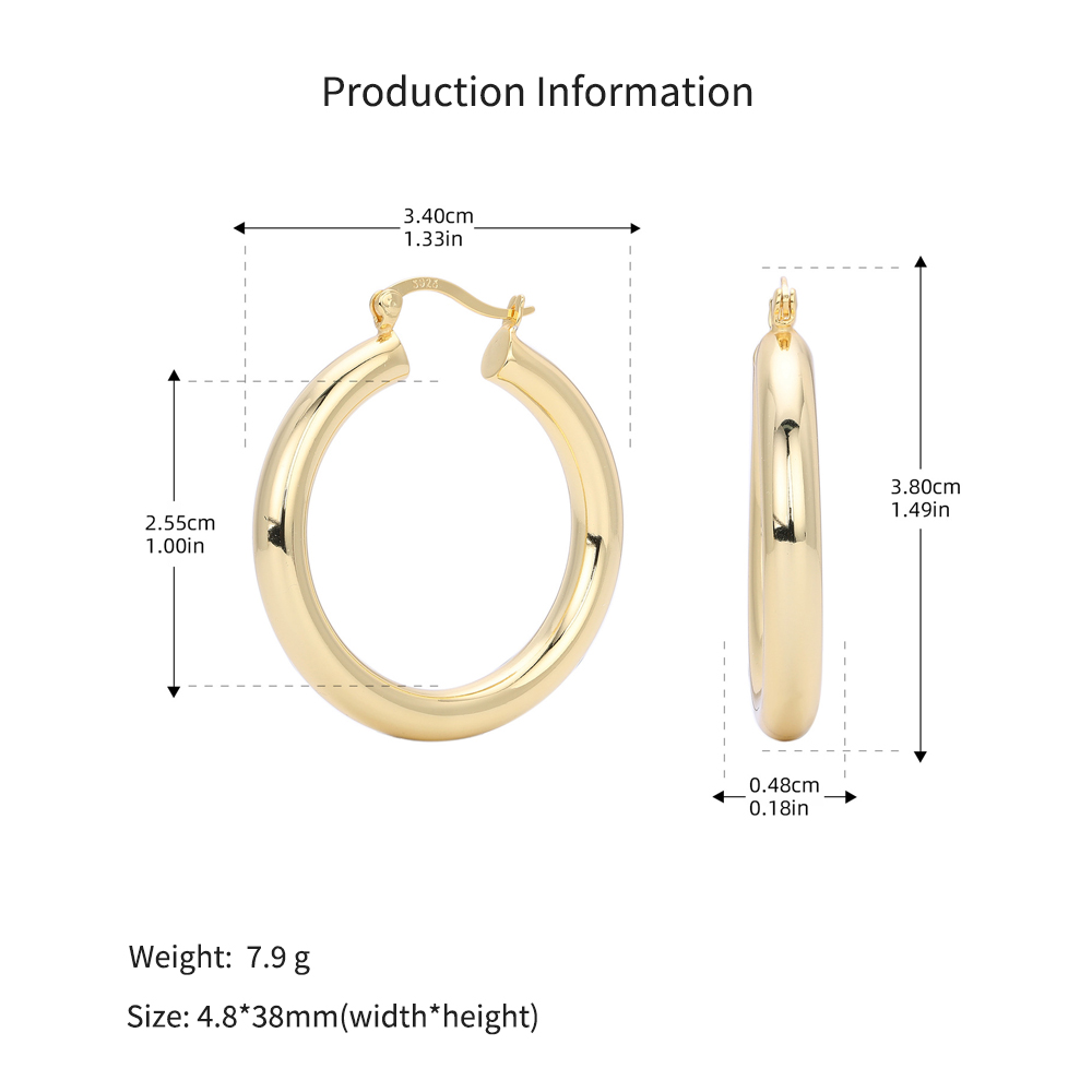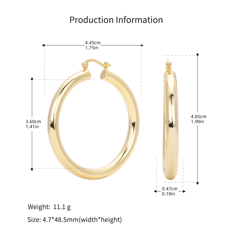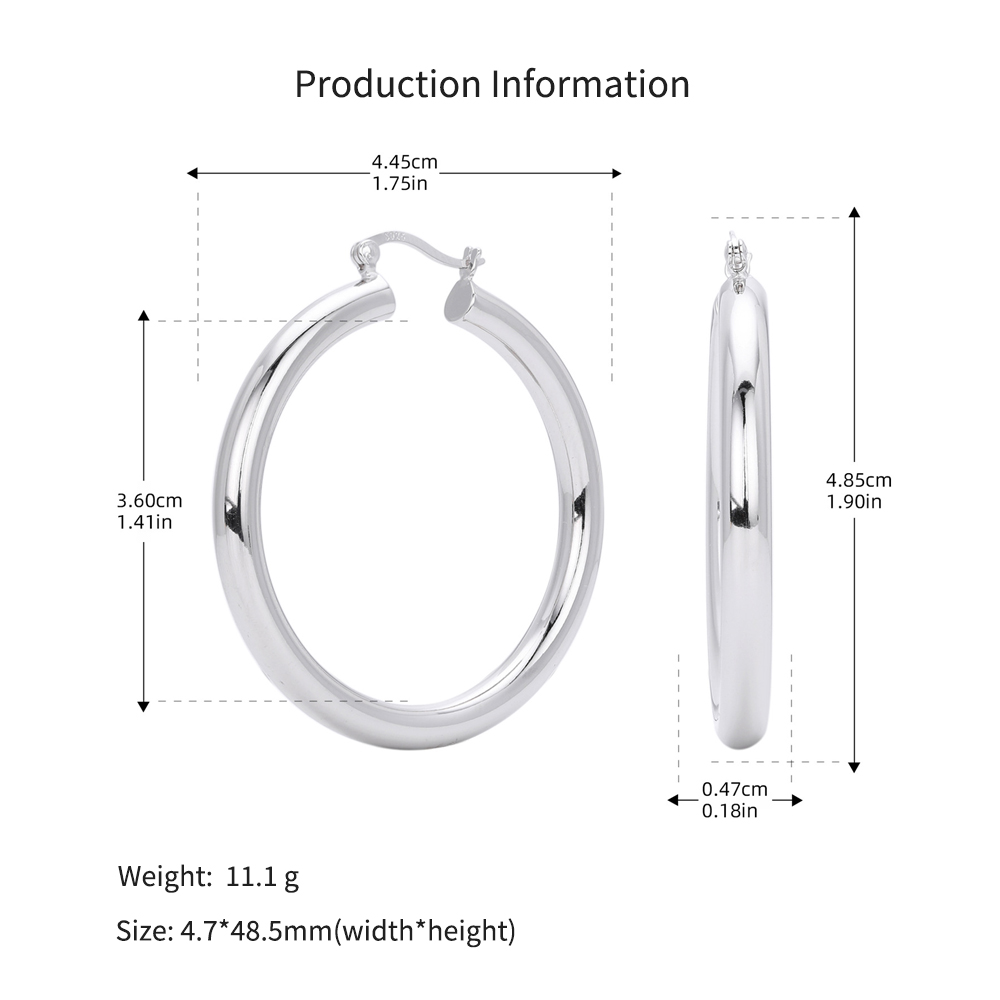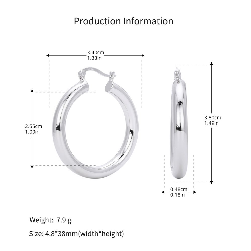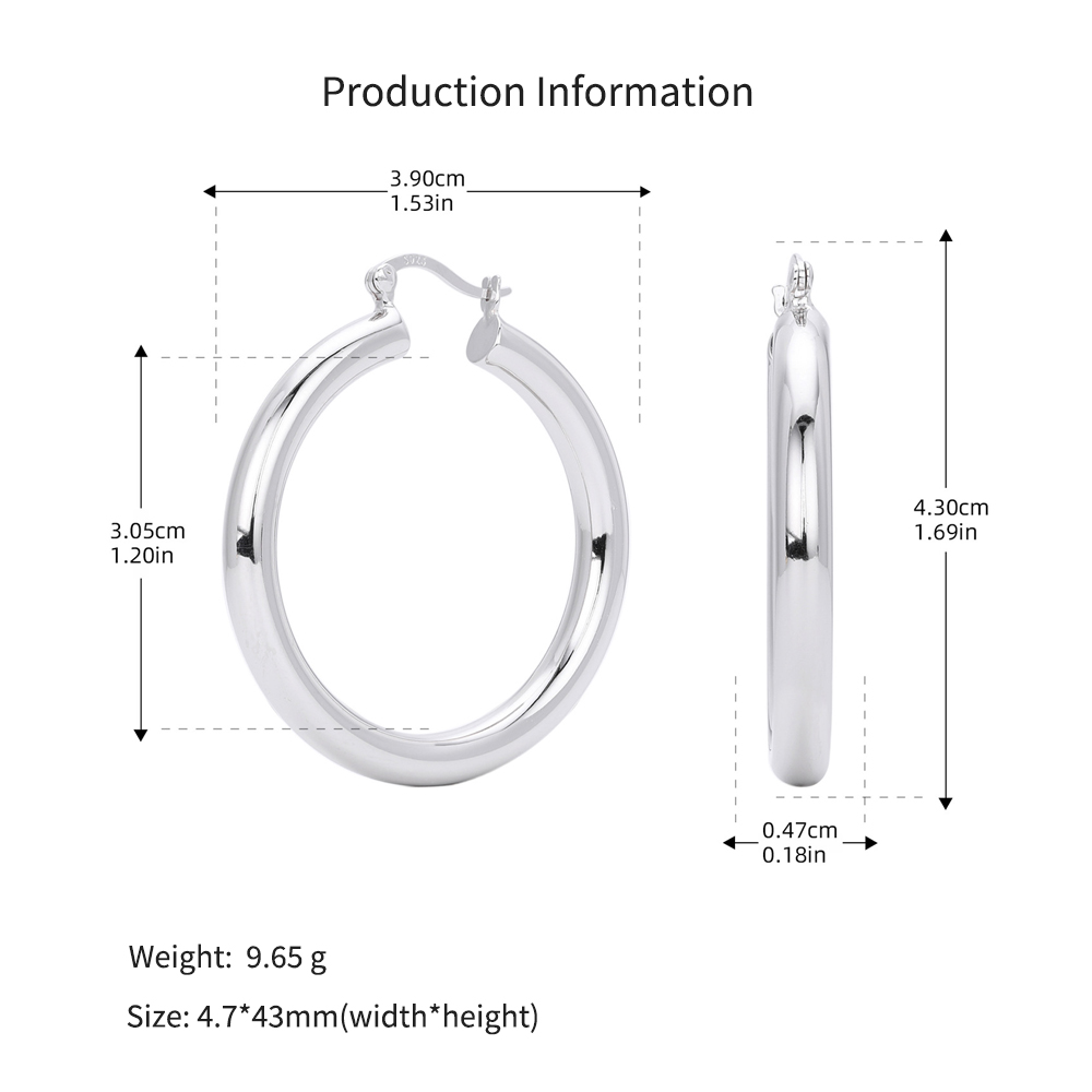 Cater to the demand for bold, "Maximalist" jewelry with our Wholesale 925 Sterling Silver Heavyweight Thick Tube Hoops. These "Exaggerated" large hoops are a staple for the "Street Style" and "Punk Chic" markets, offering a substantial look that consumers associate with luxury. The series includes 35mm (7.9g), 40mm (9.65g), and 45mm (11.1g) sizes, providing a weightier, higher-quality feel than standard hollow hoops.