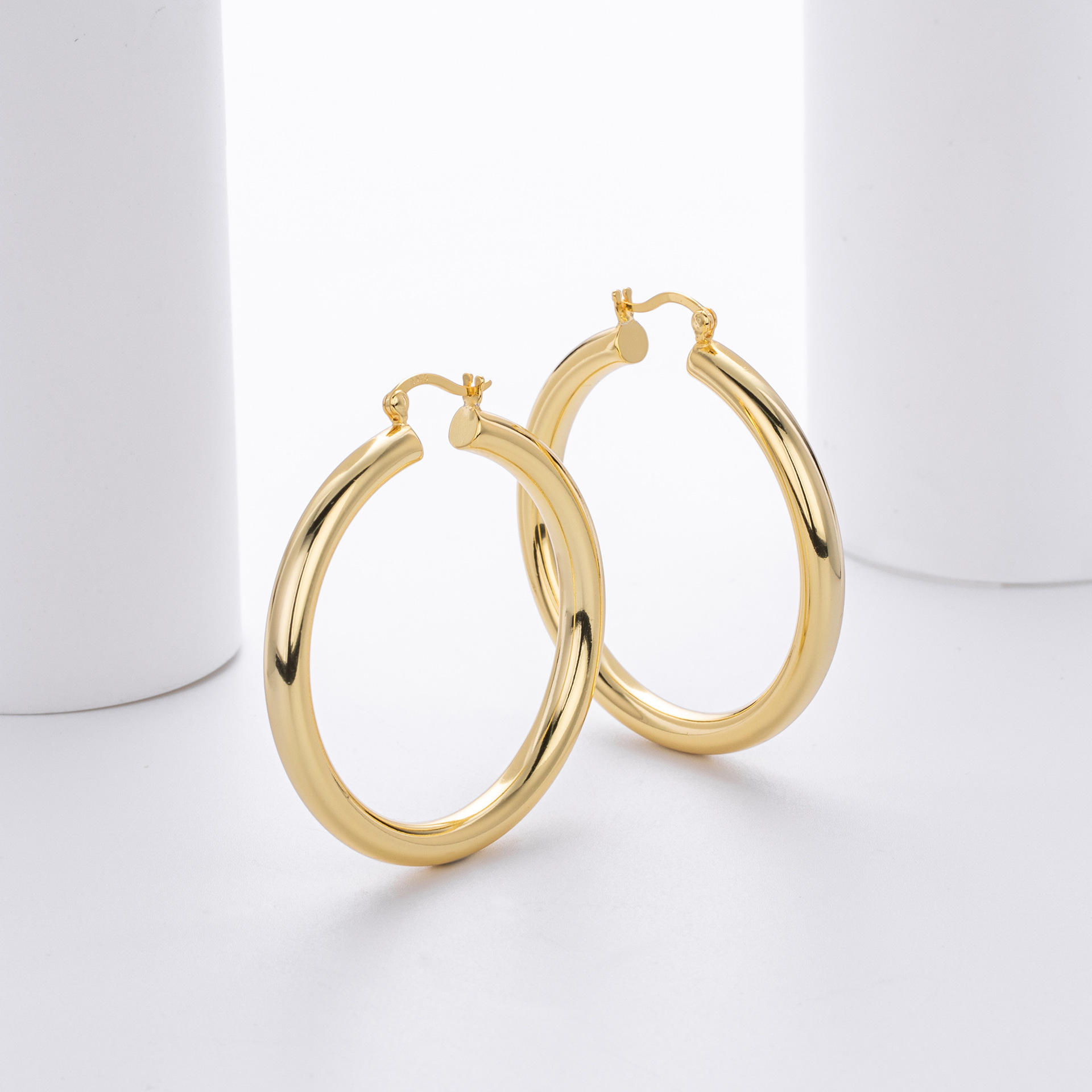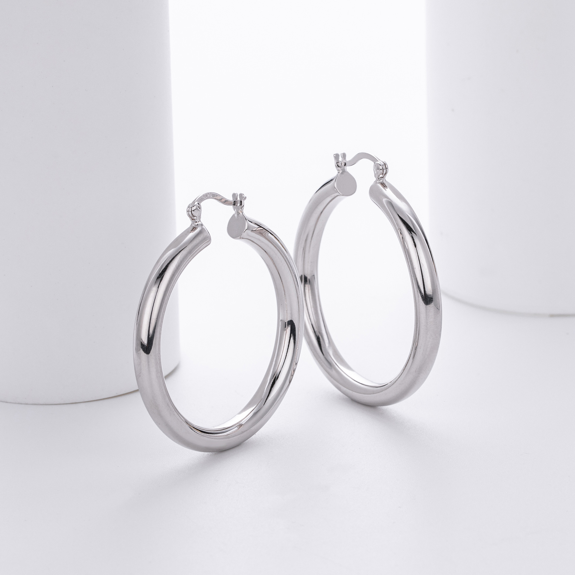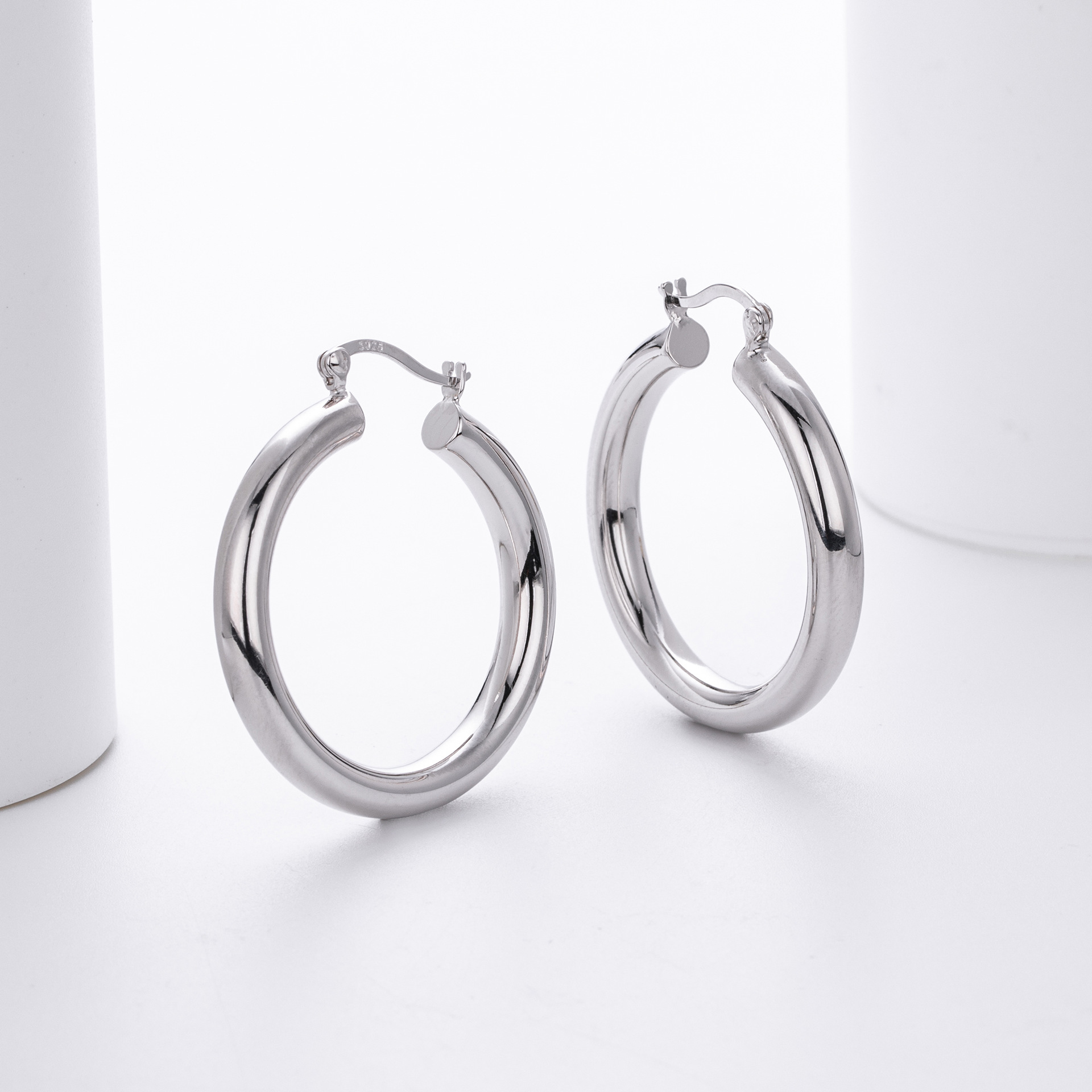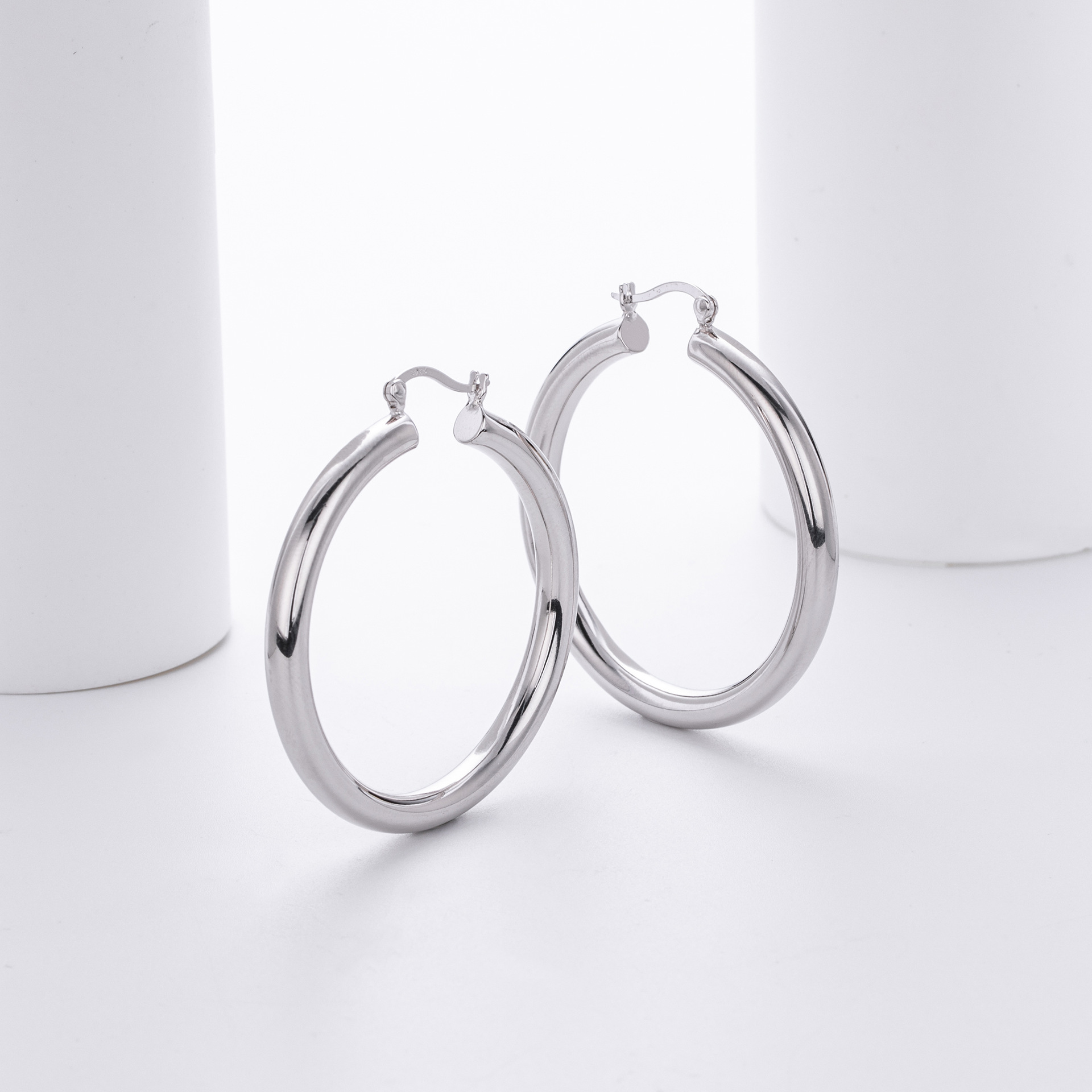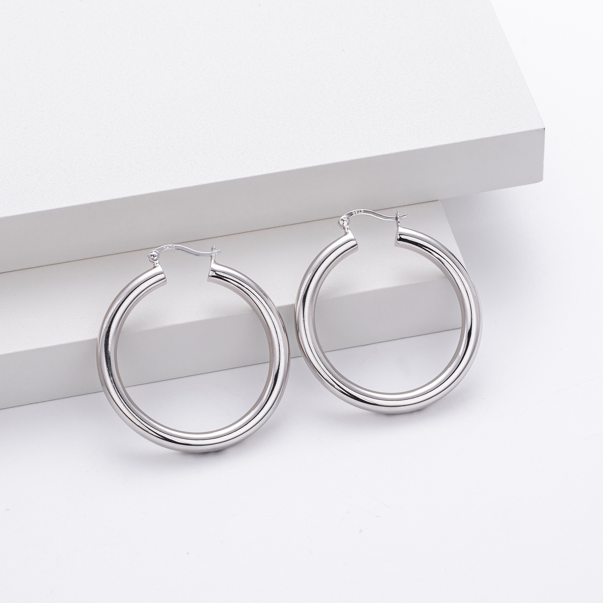 Cater to the demand for bold, "Maximalist" jewelry with our Wholesale 925 Sterling Silver Heavyweight Thick Tube Hoops. These "Exaggerated" large hoops are a staple for the "Street Style" and "Punk Chic" markets, offering a substantial look that consumers associate with luxury. The series includes 35mm (7.9g), 40mm (9.65g), and 45mm (11.1g) sizes, providing a weightier, higher-quality feel than standard hollow hoops.
