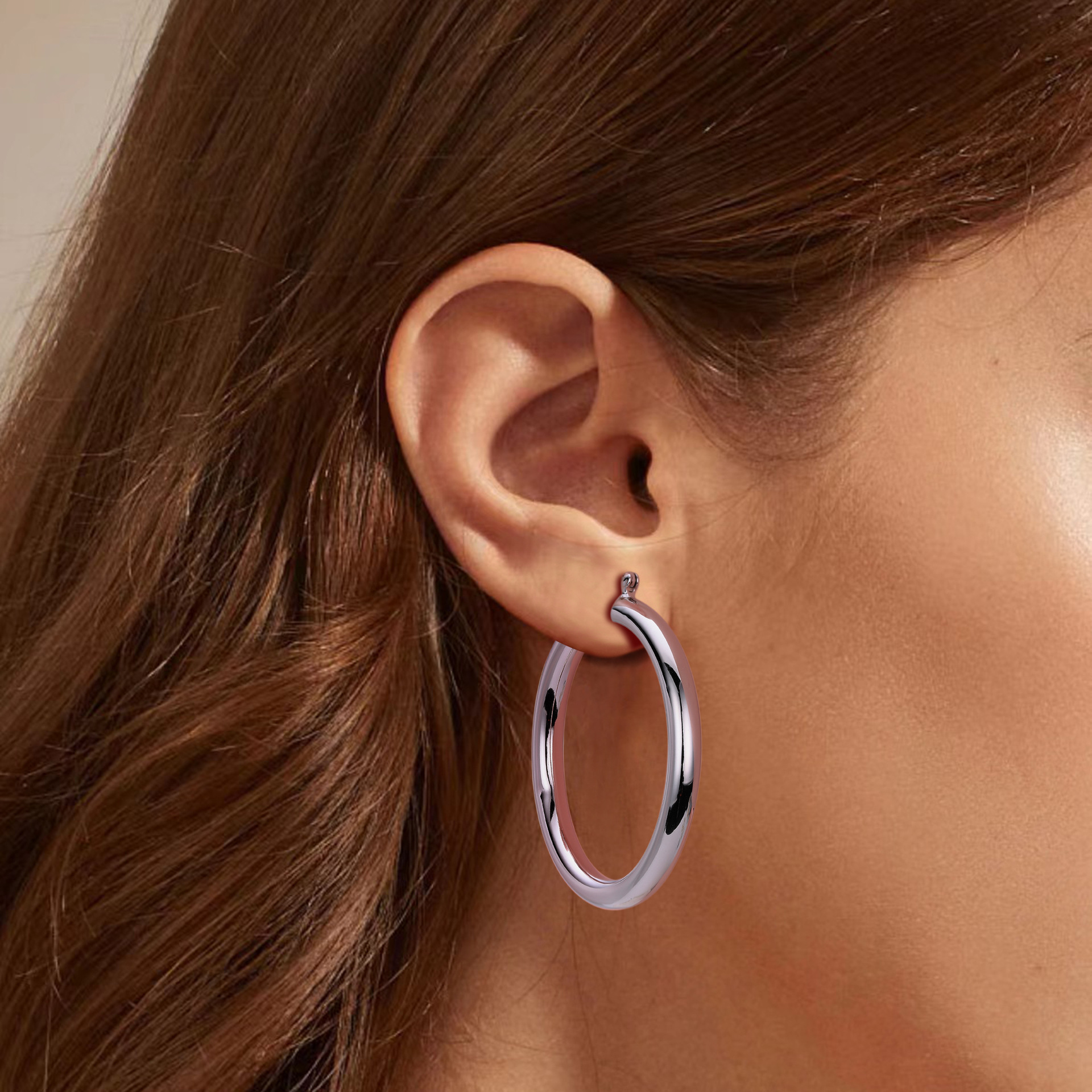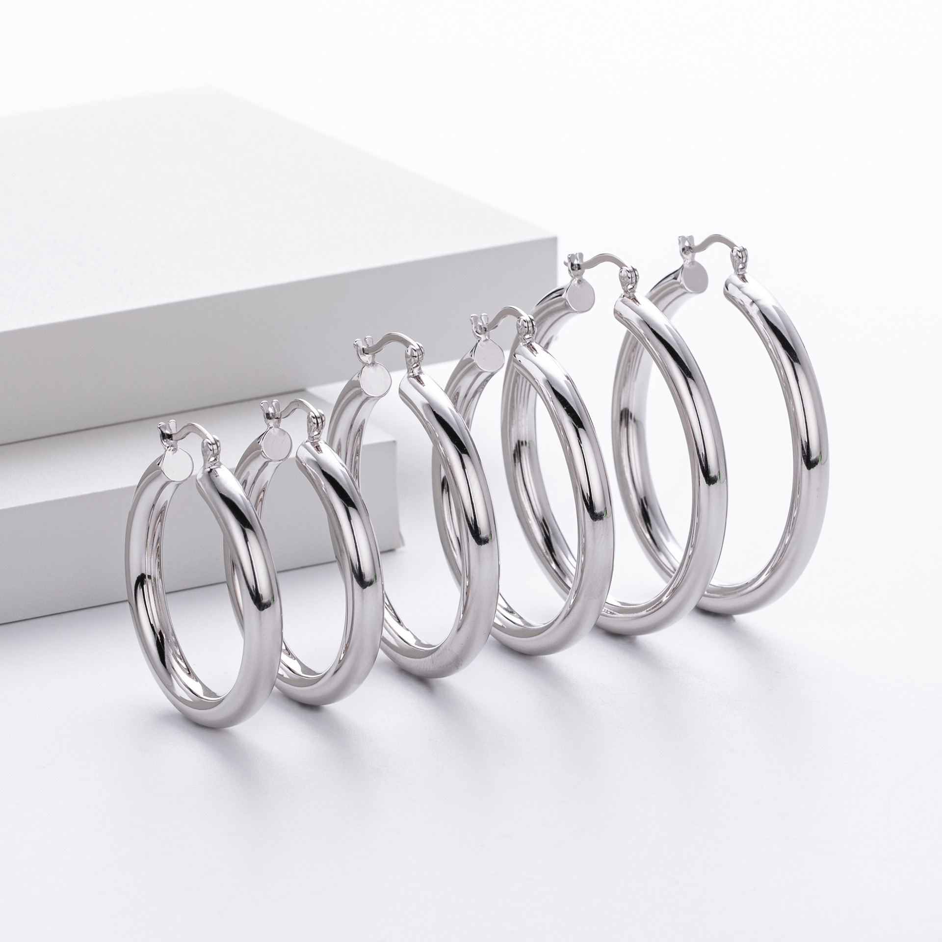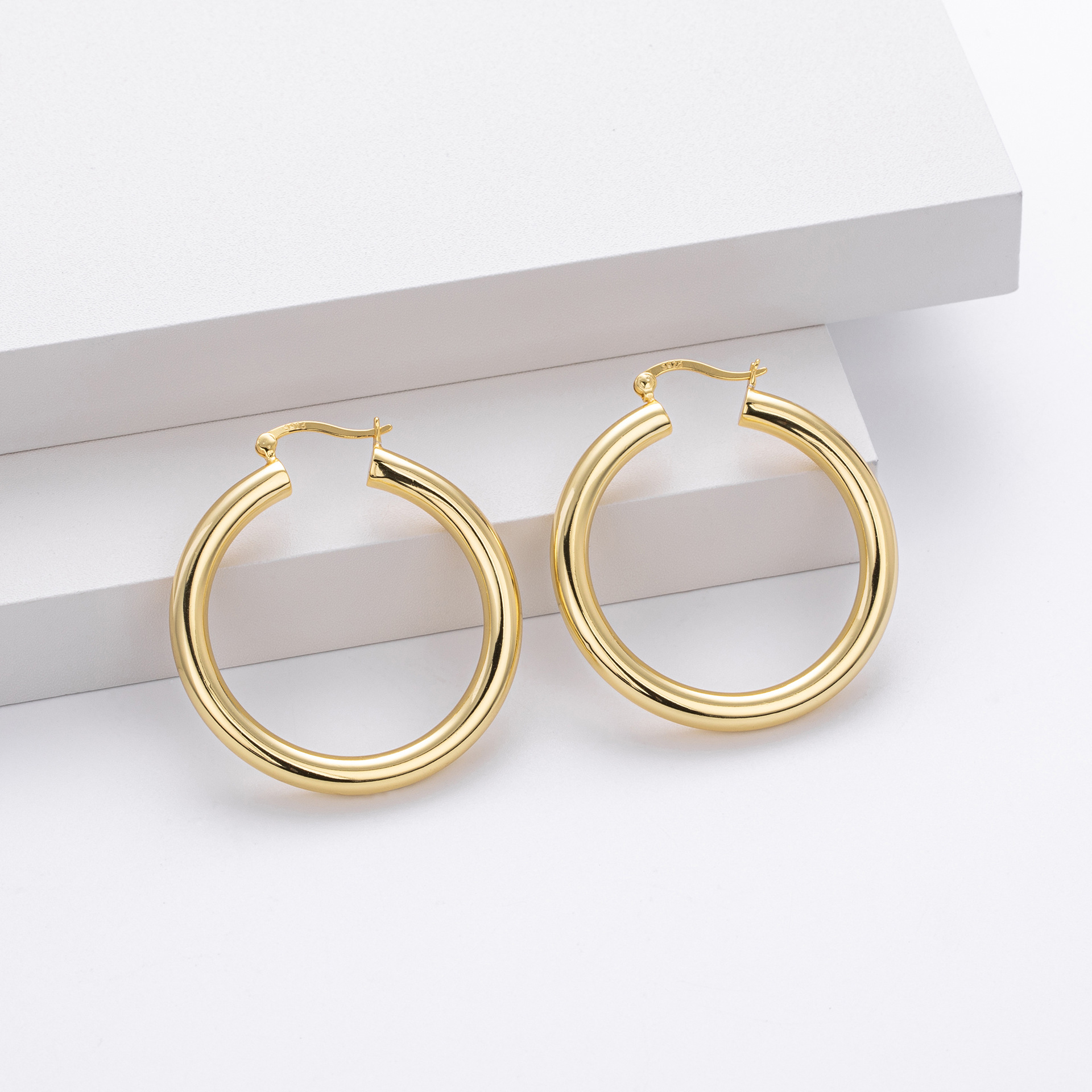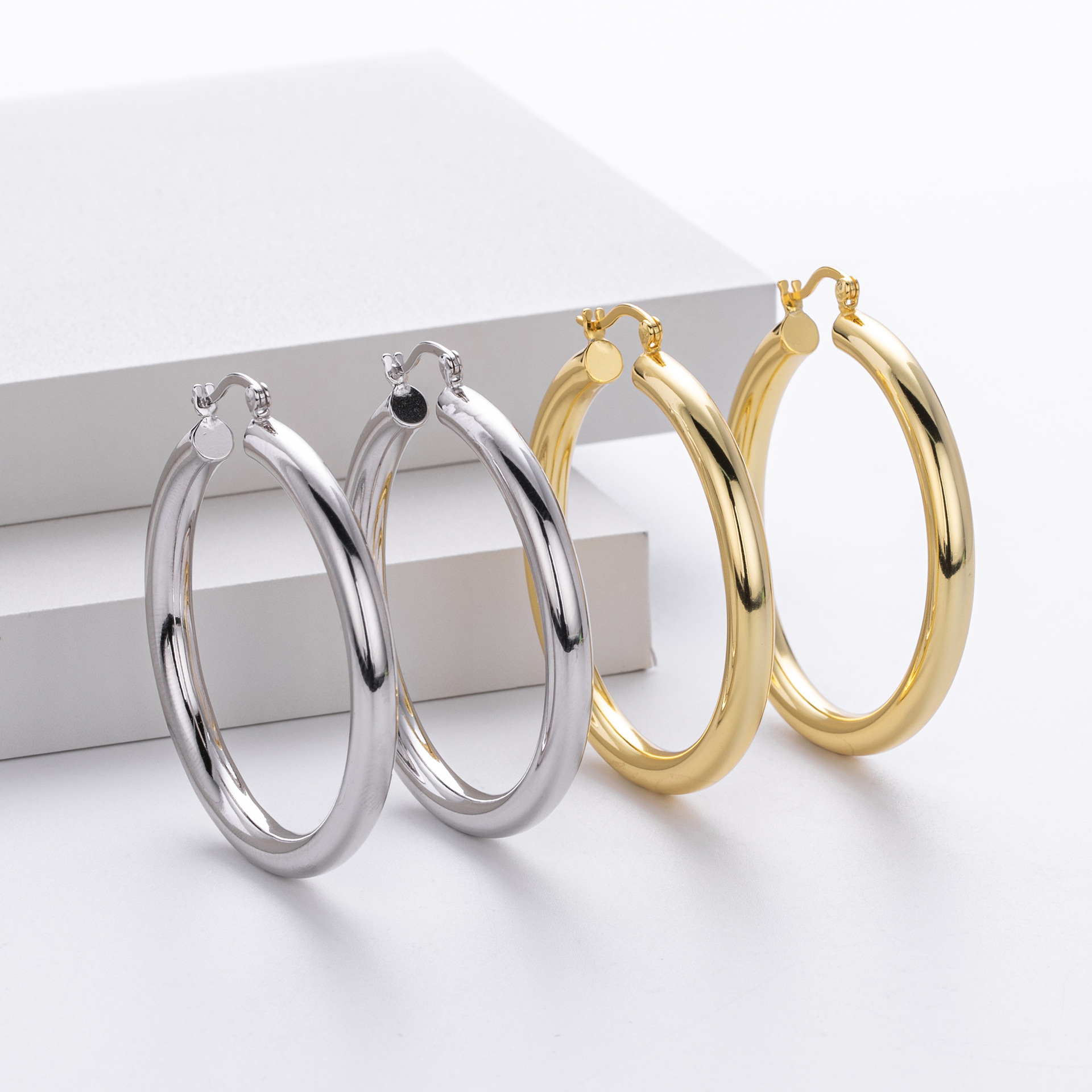 Cater to the demand for bold, "Maximalist" jewelry with our Wholesale 925 Sterling Silver Heavyweight Thick Tube Hoops. These "Exaggerated" large hoops are a staple for the "Street Style" and "Punk Chic" markets, offering a substantial look that consumers associate with luxury. The series includes 35mm (7.9g), 40mm (9.65g), and 45mm (11.1g) sizes, providing a weightier, higher-quality feel than standard hollow hoops.