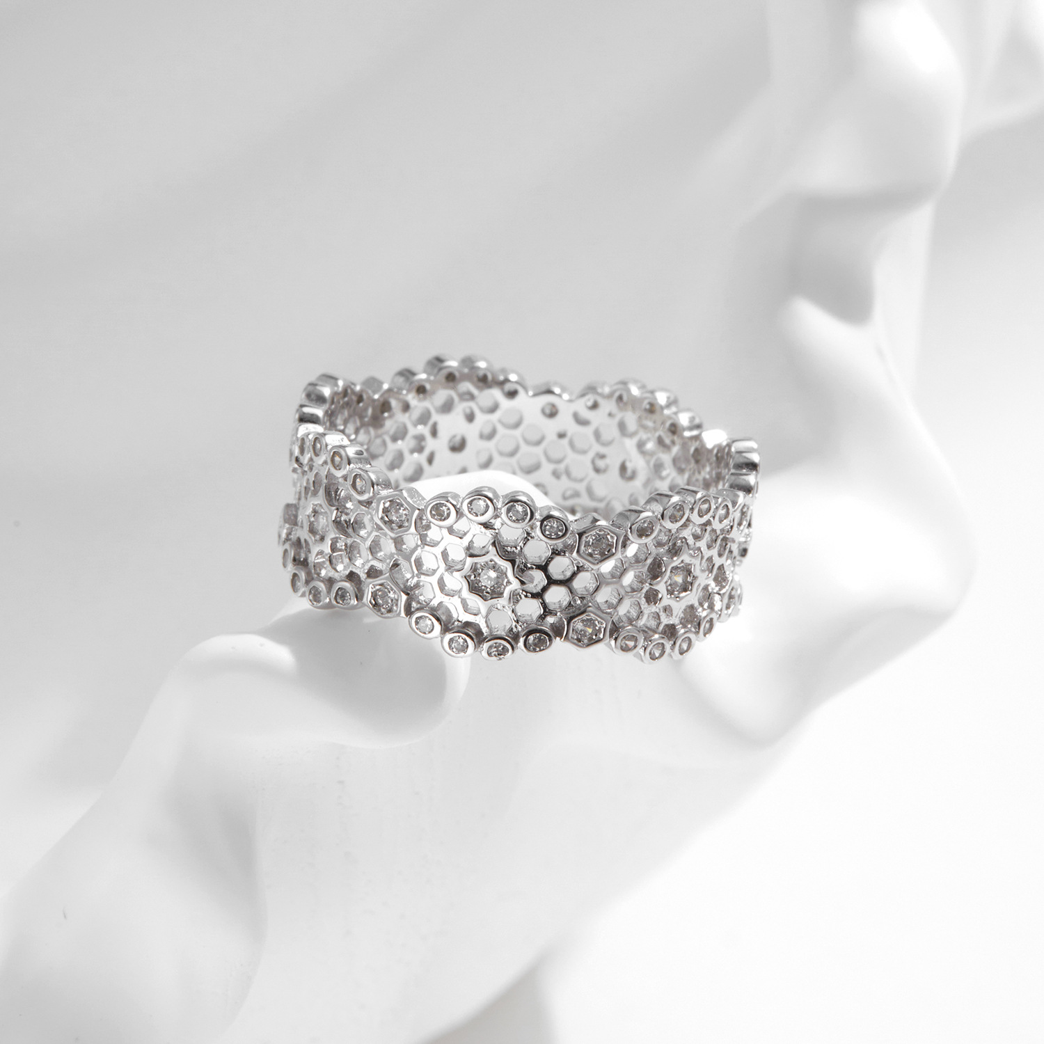 925 Sterling Silver Hollow Lace Honeycomb CZ Band Ring 70100421