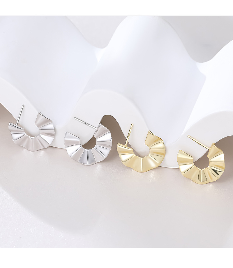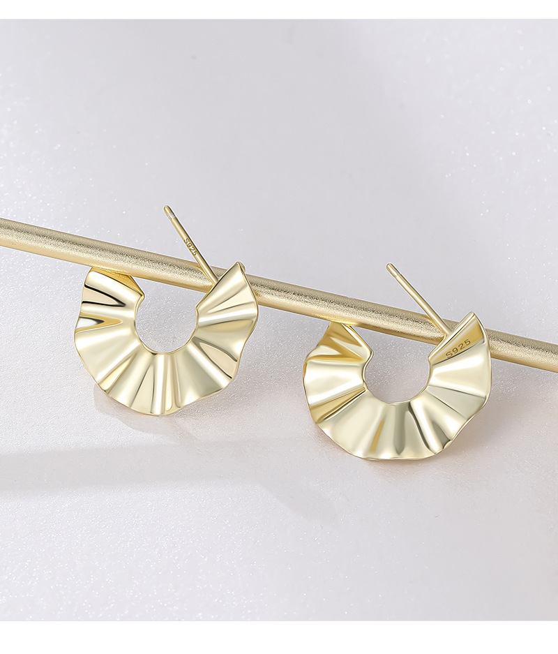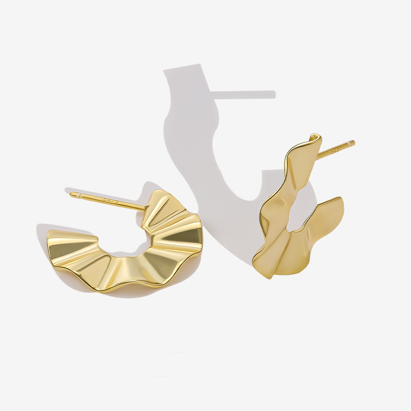 These 925 sterling silver earrings feature a unique irregular C-shape with a chic wrinkled texture. Gold plated for a luxurious finish, they bring modern elegance and bold personality to any outfit. Perfect for fashion-forward women who love small-batch, designer-inspired jewelry.