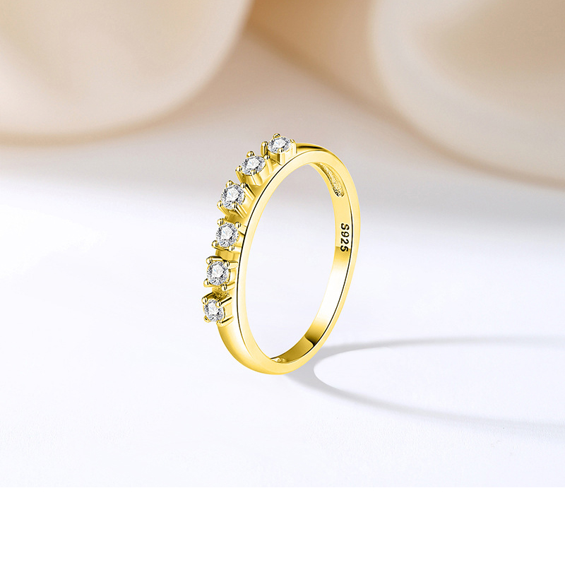This elegant stacking ring is crafted from high-quality 925 sterling silver and plated in radiant gold/silver for a luxurious finish. Featuring a unique row of irregularly set cubic zirconia stones, it captures a modern, understated aesthetic with a touch of sparkle. Perfect for mixing and matching, this minimalist yet distinctive design is ideal for everyday wear or layering with other rings. A great wholesale option for retailers specializing in dainty rings, fashion jewelry, and wholesale 925 silver jewelry.
