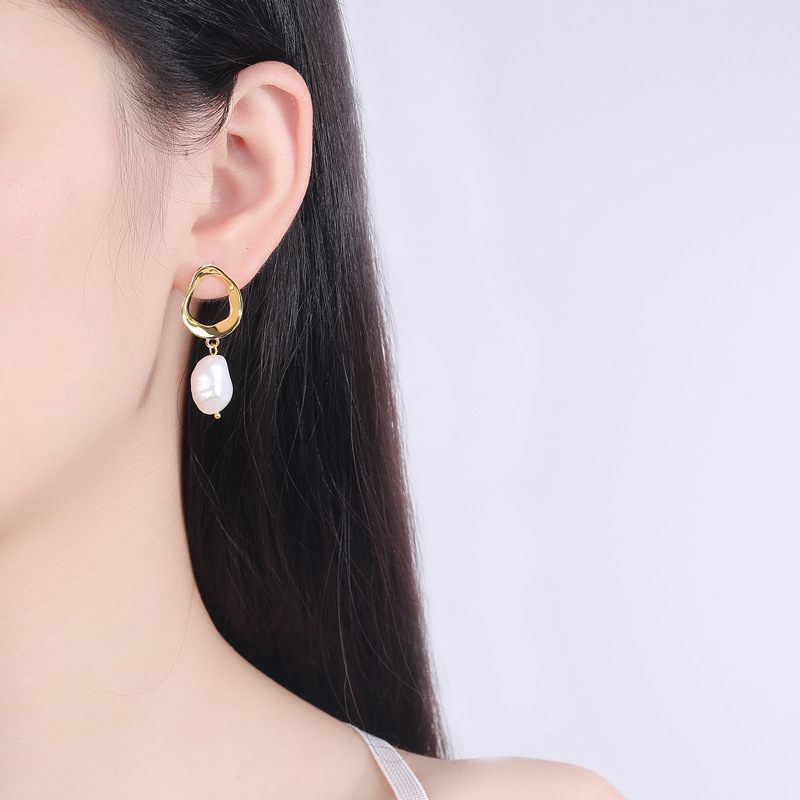 925 Sterling Silver Irregular Fresh Water Pearl Stud Earring 40500065