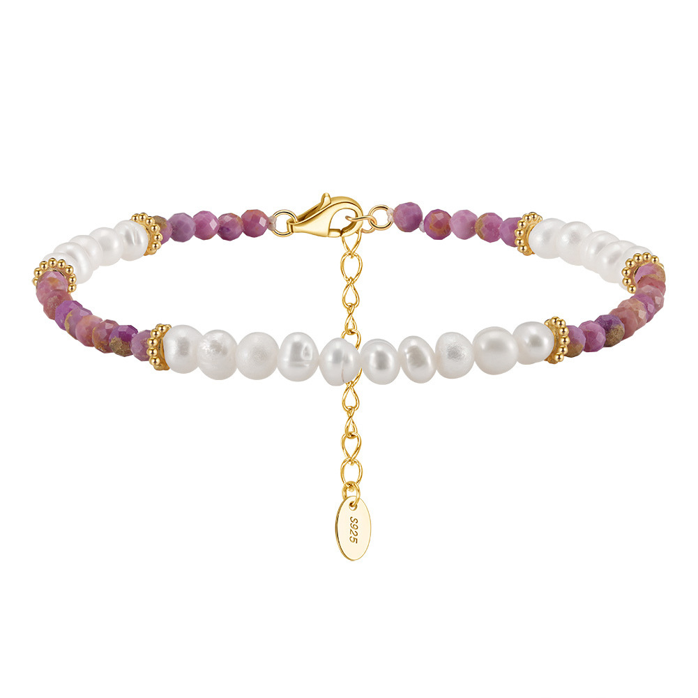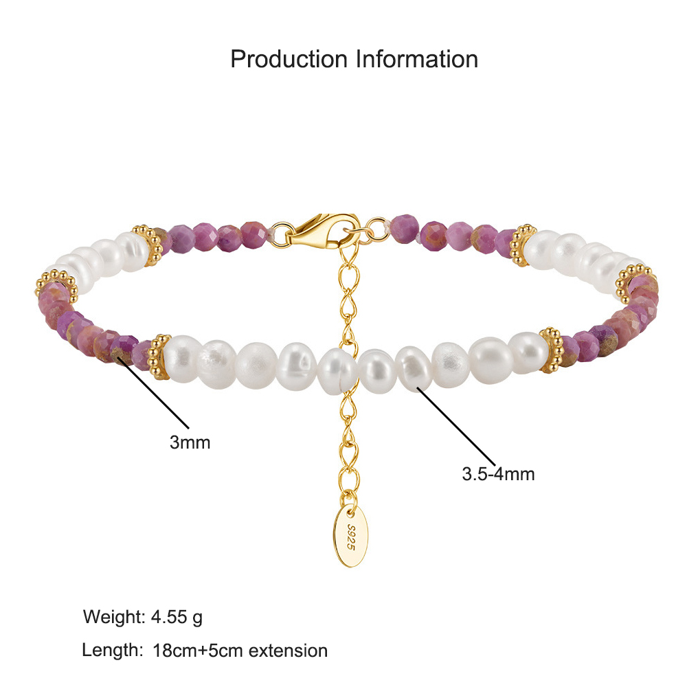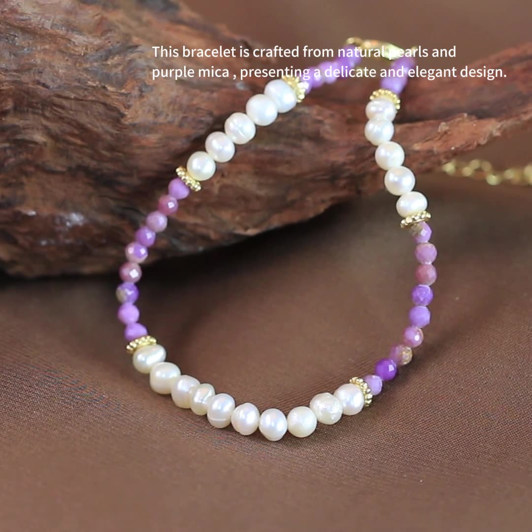 Diversify your inventory with our highly profitable Wholesale S925 Sterling Silver Gemstone & Pearl Bracelet. This unique piece is a must-have for any retailer, as it combines the enduring appeal of natural freshwater pearls with the growing trend for natural stone jewelry. The beautiful, distinct colors of the lilac mica make this bracelet a stand-out item that will attract customers looking for something different from a standard pearl piece.