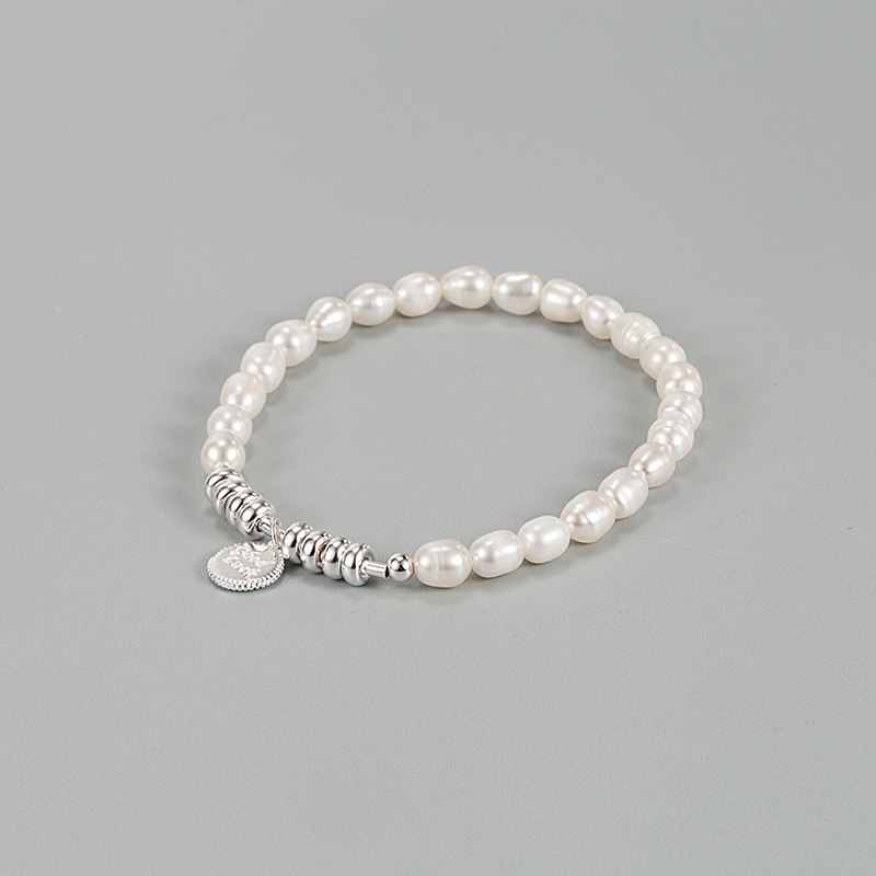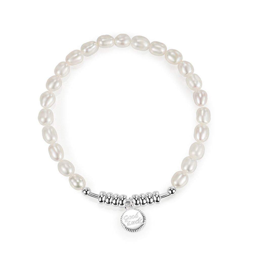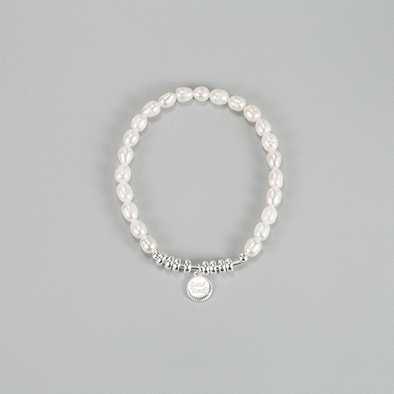 Stock your collection with these stylish baroque pearl bracelets, designed with irregular freshwater pearls and a 925 sterling silver charm. The unique “Good Luck” round pendant and trendy design make it a popular piece among fashion-forward customers, ideal for boutiques and online stores.