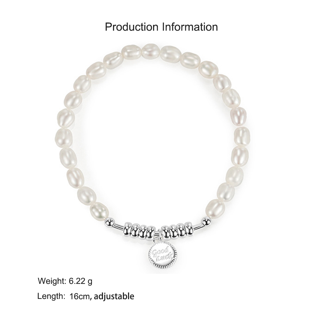 This elegant bracelet is crafted with natural baroque freshwater pearls, accented by 925 sterling silver beads and a round letter charm engraved with “Good Luck.” Its unique irregular pearl shape and delicate silver details make it a stylish accessory for daily wear or as a meaningful gift.