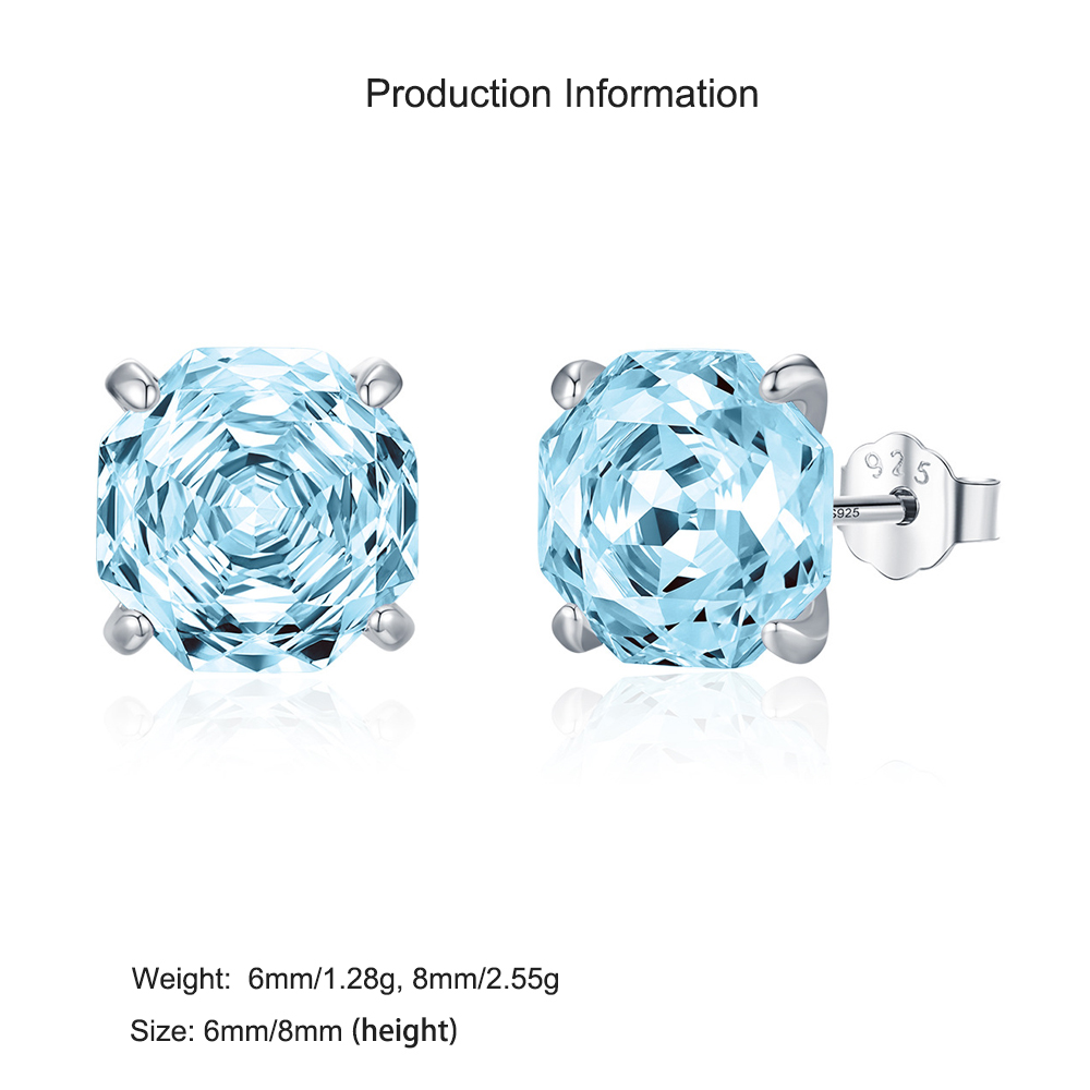925 Sterling Silver Light Aquamarine Octagon Rose Cut Stud Earring 40200625