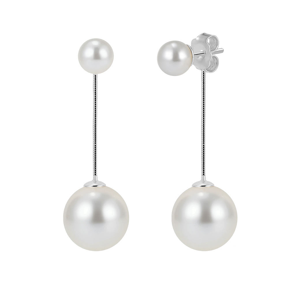 925 Sterling Silver Linear Chain Tassel Shell Pearl Drop Earrings 40500079