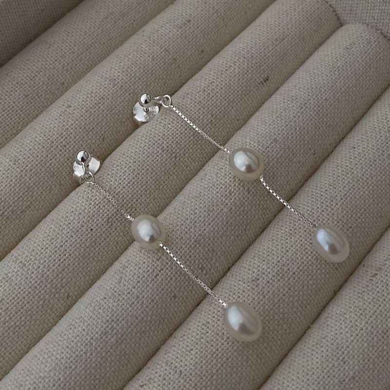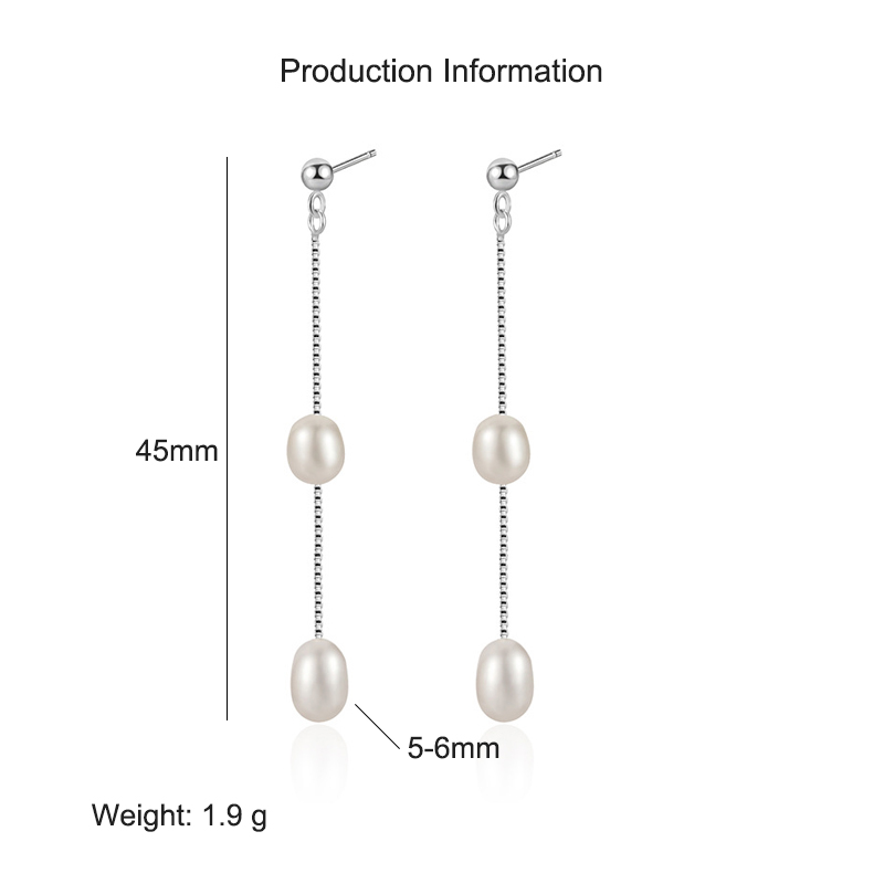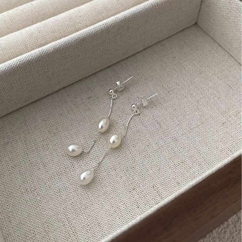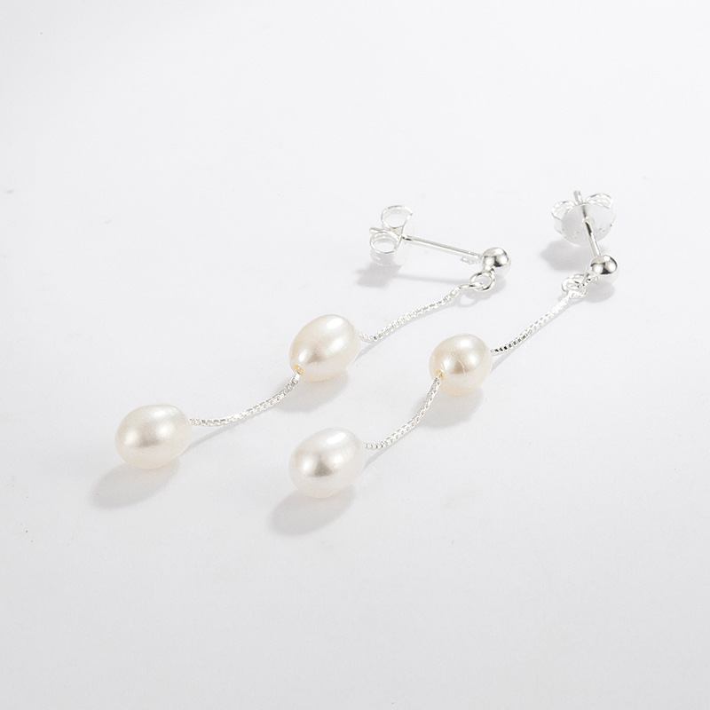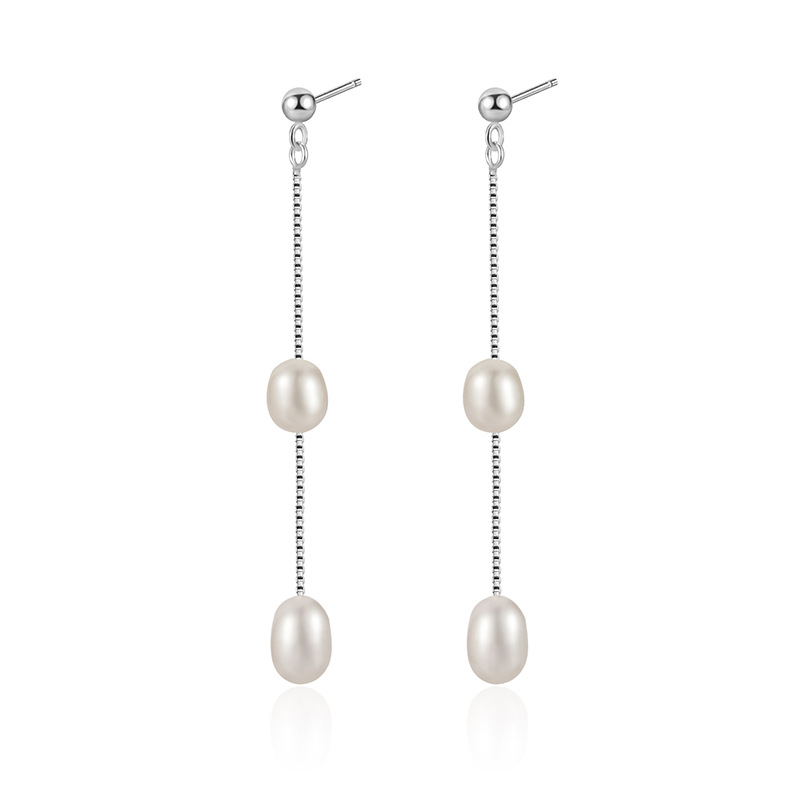 925 Sterling Silver Long Tassel Fresh Water Peral Stud Earring 40500059