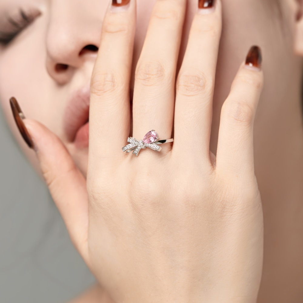 Product: Wholesale 925 Sterling Silver Lovely Bow Zirconia Band Ring 70100301.