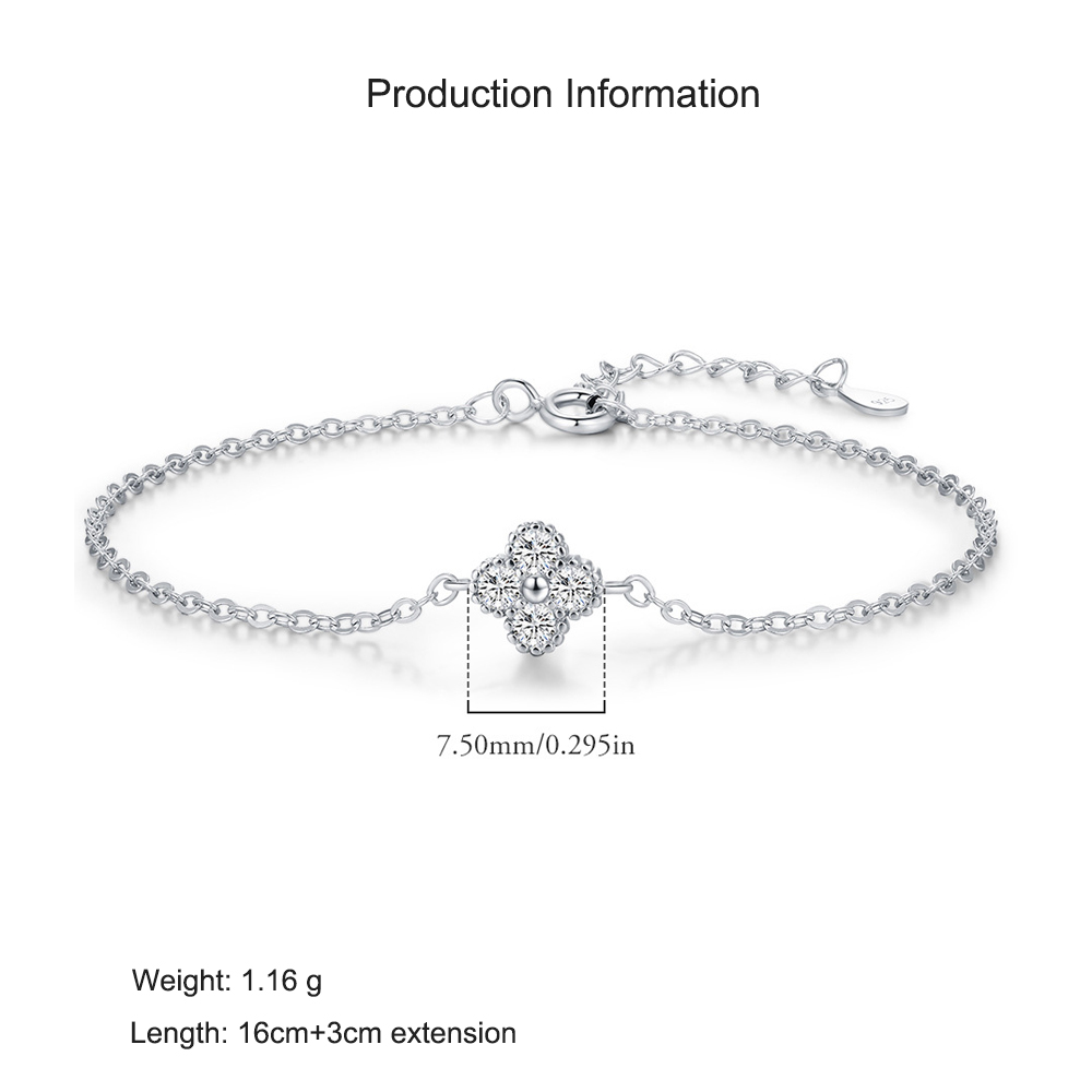Elevate your daily elegance with this chic 925 sterling silver bracelet, featuring a dazzling four-leaf clover design encrusted with brilliant zircon stones. The sleek and minimalist chain complements the refined sparkle, making it perfect for office wear, commuting, or pairing with smart casual outfits. A subtle symbol of luck and grace, ideal for the modern professional woman.