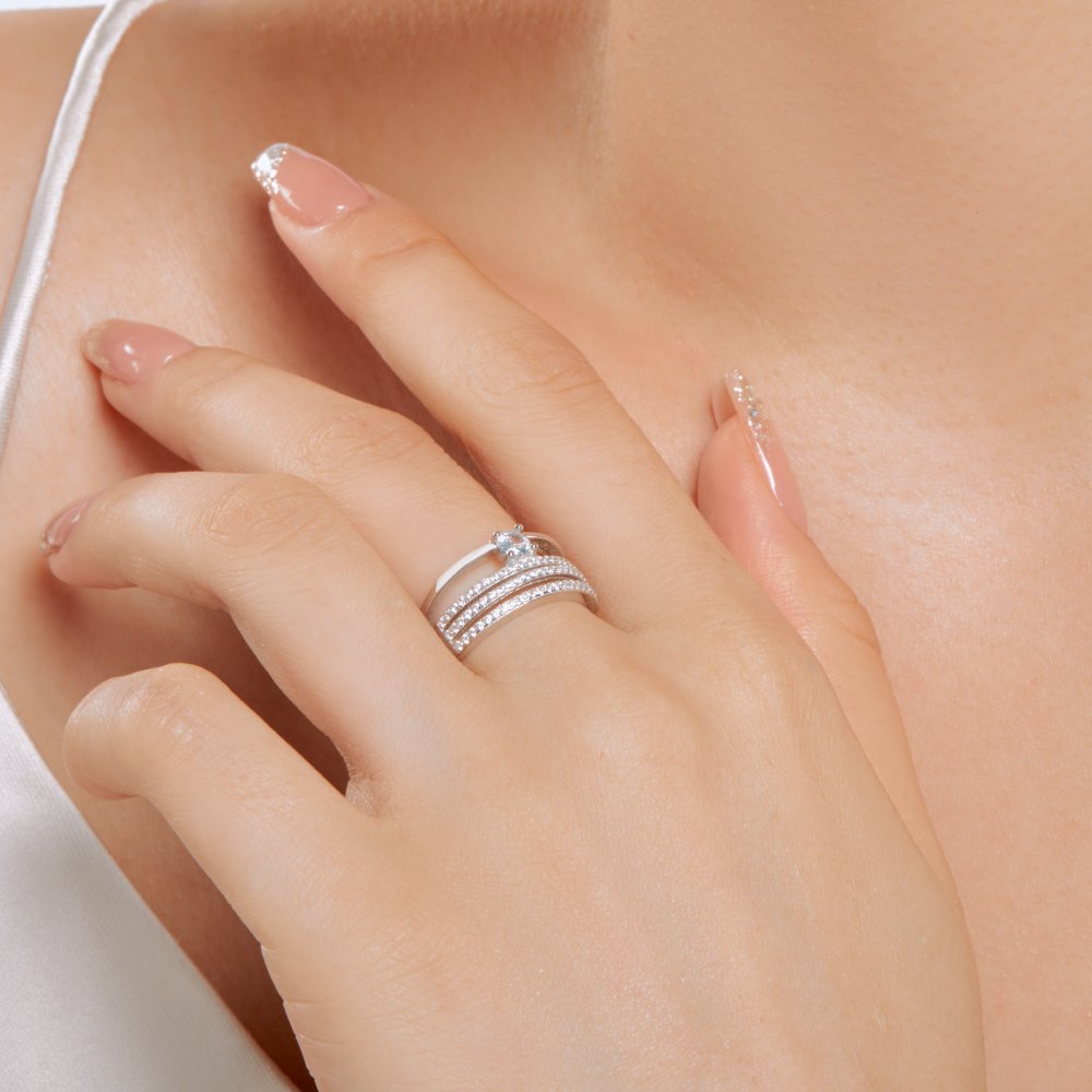925 Sterling Silver Luxury Layers Zirconia Band Ring 70100241