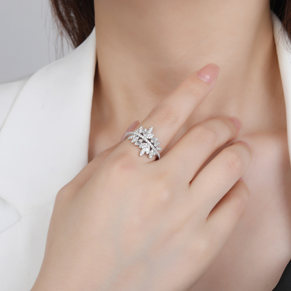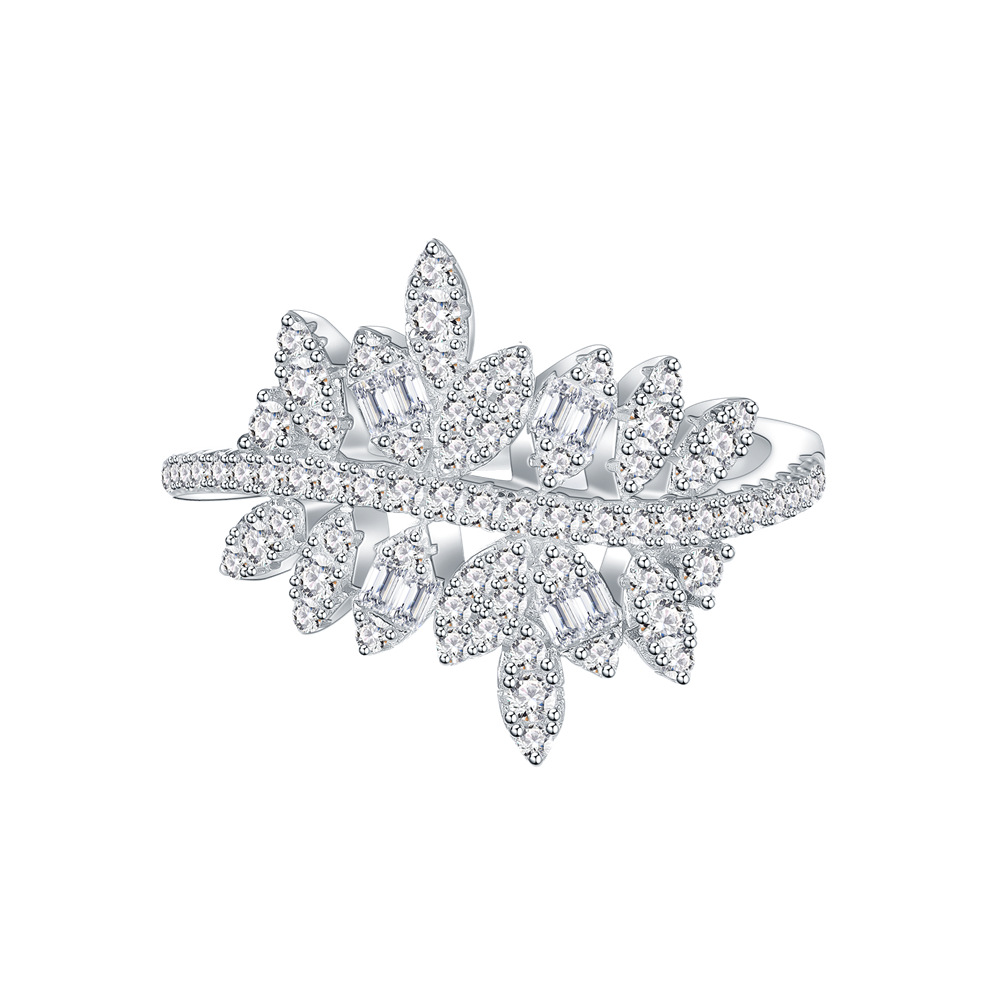 925 Sterling Silver Luxury Leaf Zirconia Band Ring 70100290