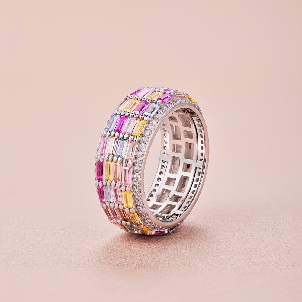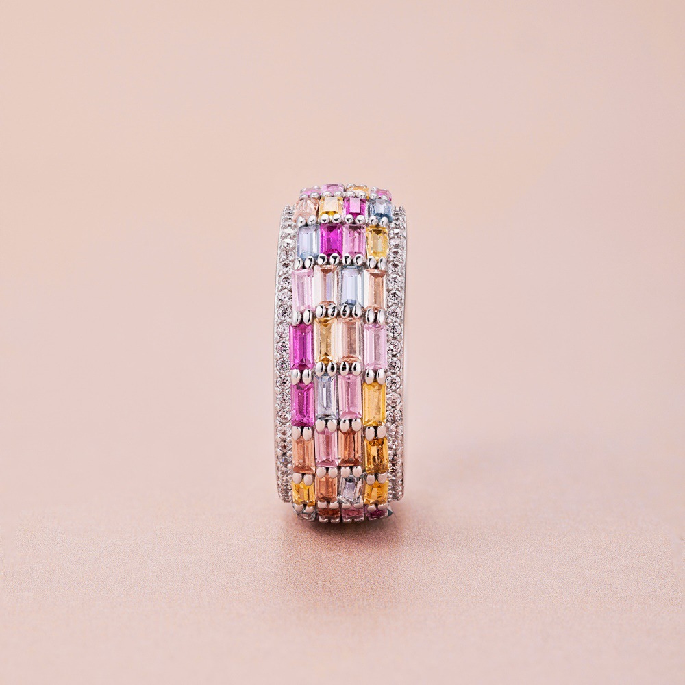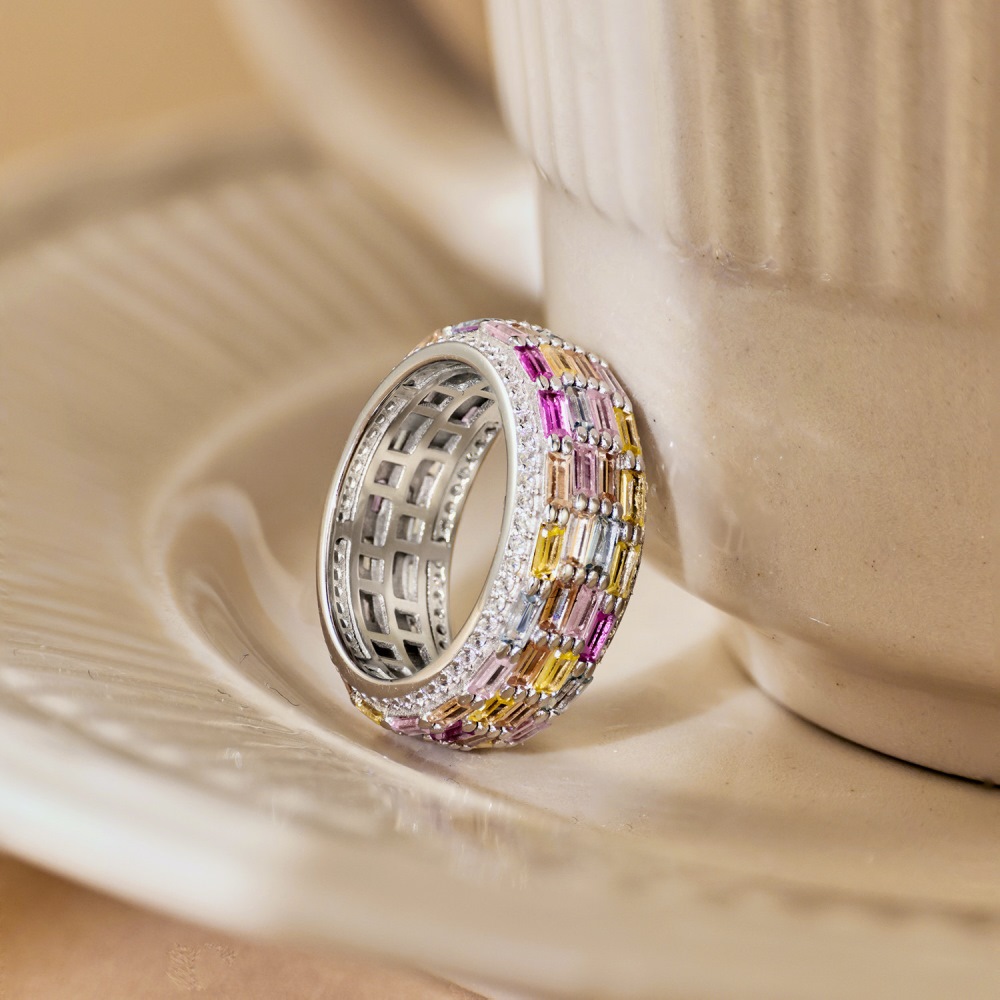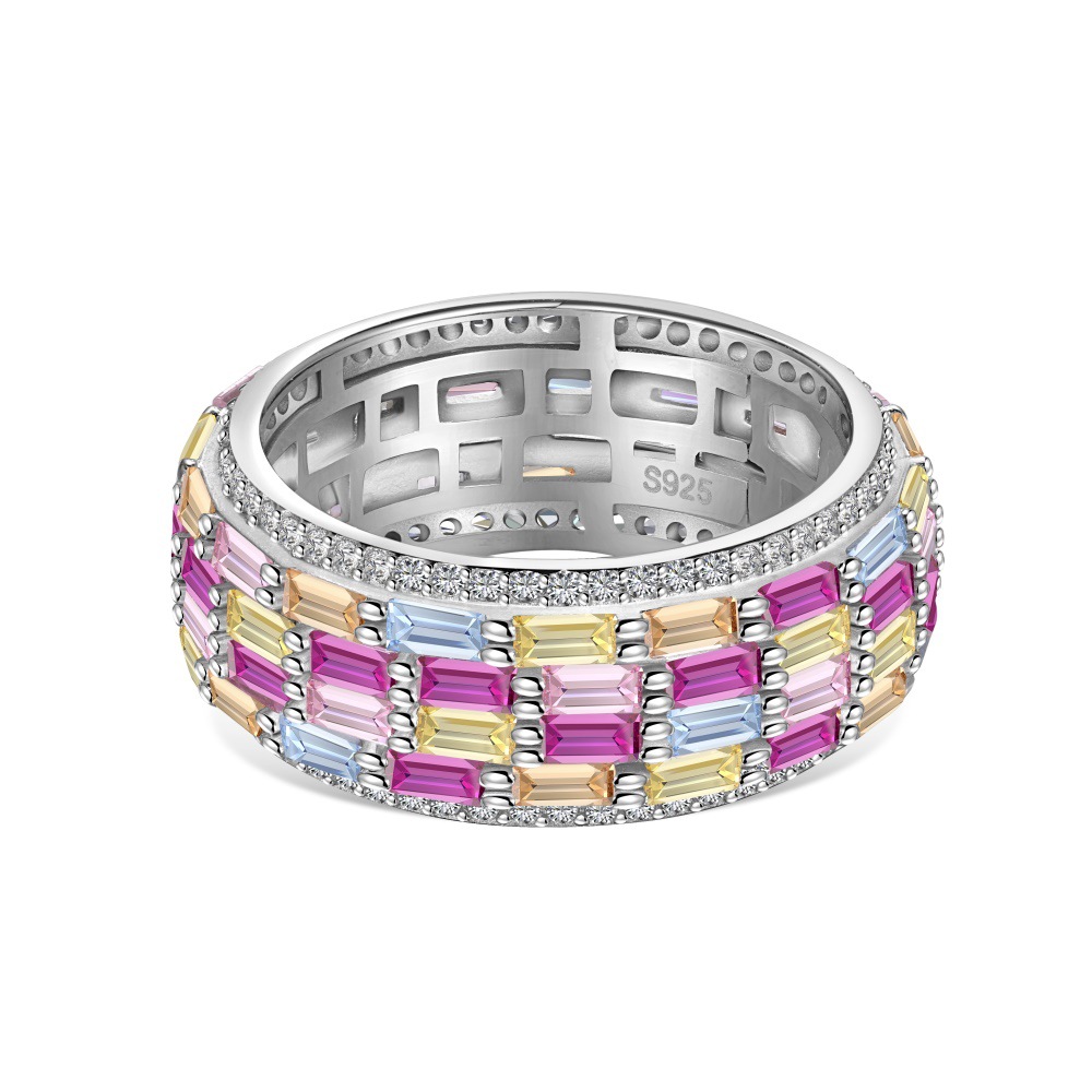 925 Sterling Silver Luxury Rainbow Zirconia Band Ring 70100225