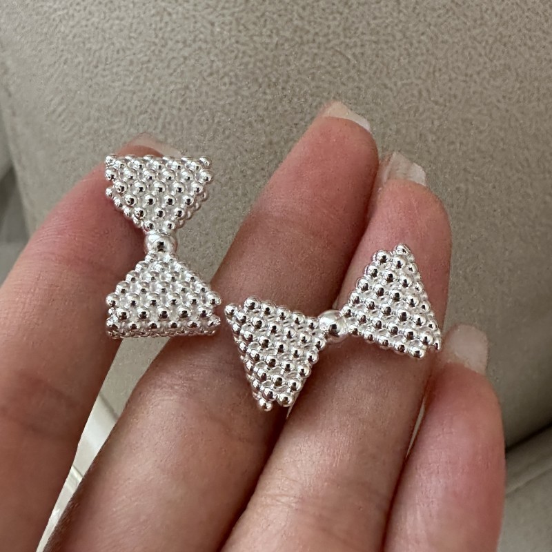 Source a charming and detailed inventory staple with our 925 Sterling Silver Micro-Bead Textured Bow Studs. This style features an attractive beaded or granular surface finish, a key detail that enhances perceived value and appeal. The classic bowknot shape ensures broad market demand. Crafted from authentic S925 sterling silver, this piece offers high-quality construction at a competitive bulk price. It is an ideal item for retailers focusing on delicate, feminine, and high-detail jewelry. Available for bulk purchase.