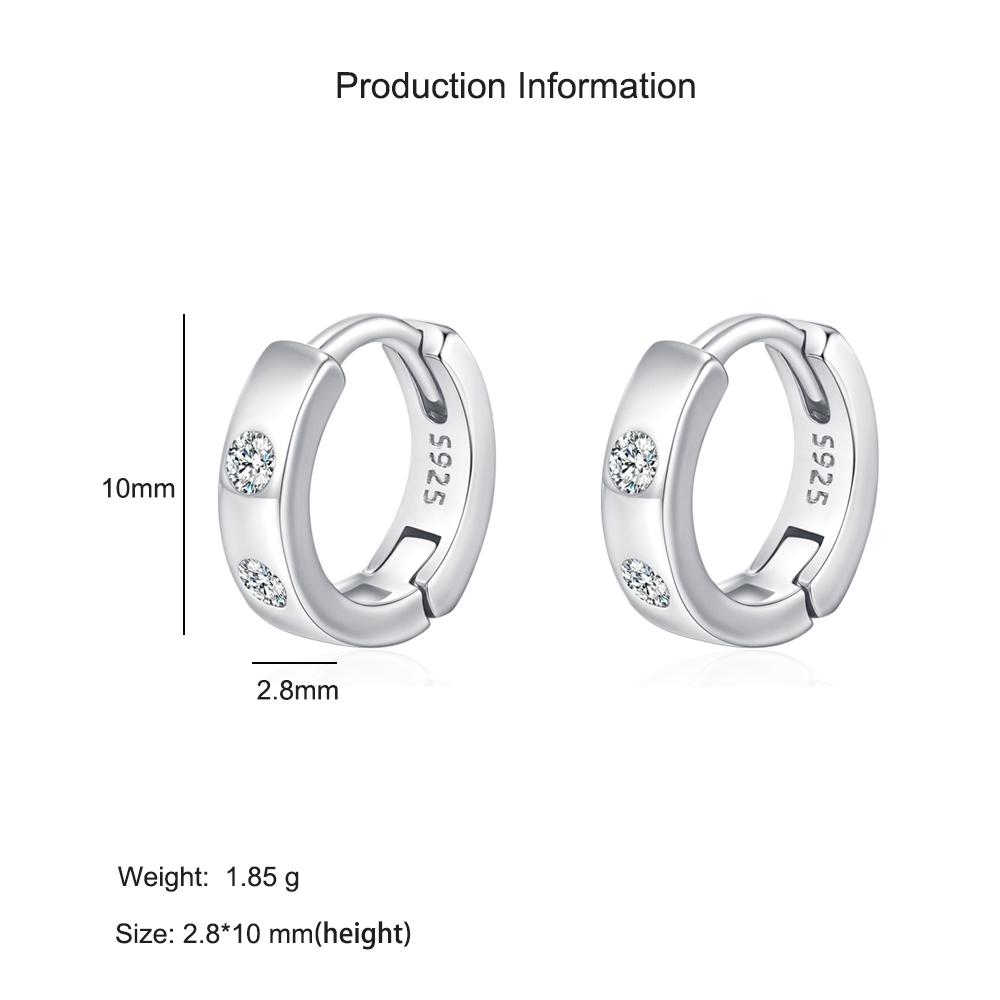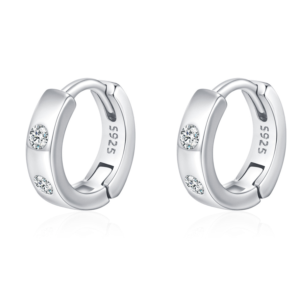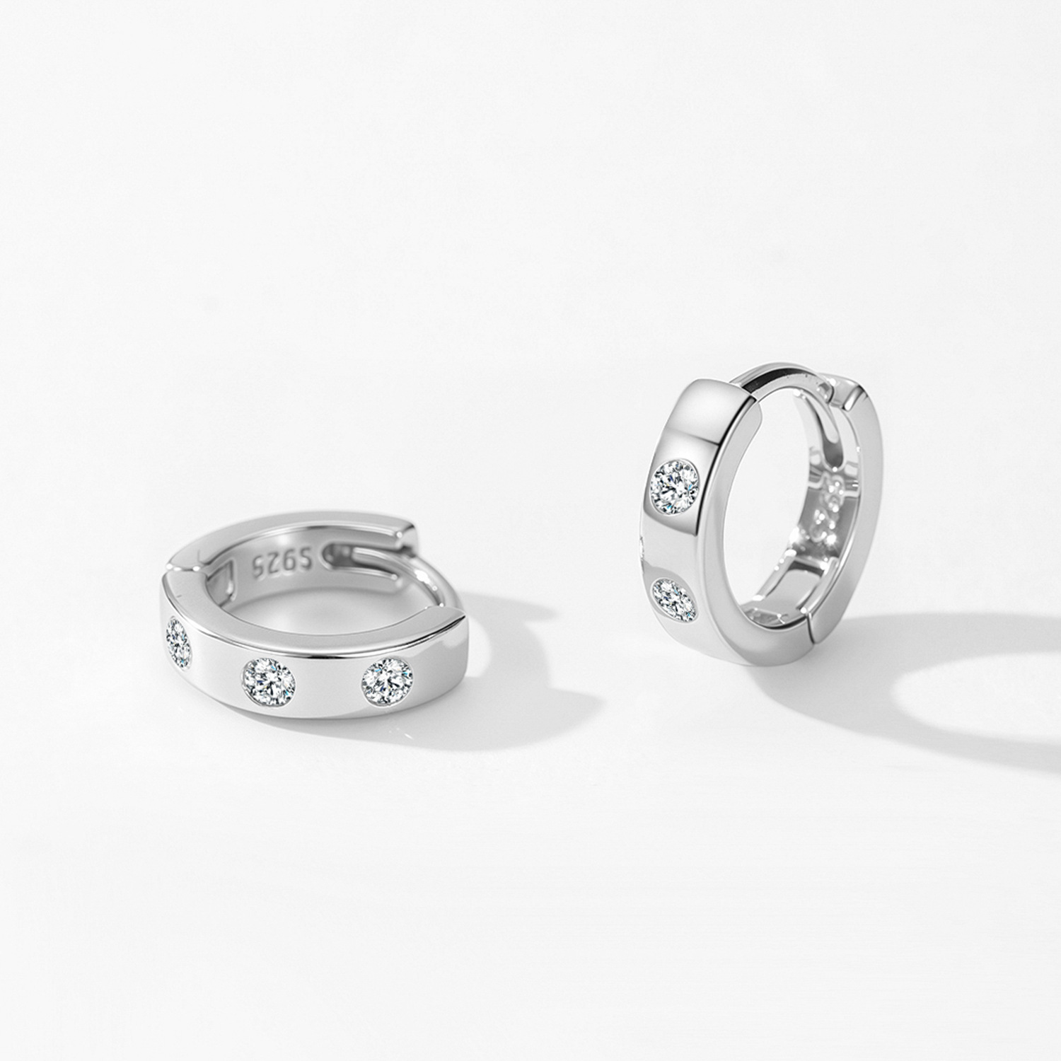 These 925 sterling silver hoop earrings combine modern geometry with subtle sparkle. Featuring a smooth, rounded profile and precisely set cubic zirconia stones, they radiate minimalist sophistication. Perfect for everyday wear or elegant occasions, these huggie hoops bring a refined shimmer to any outfit while ensuring comfort and durability. A must-have for those who love understated luxury.