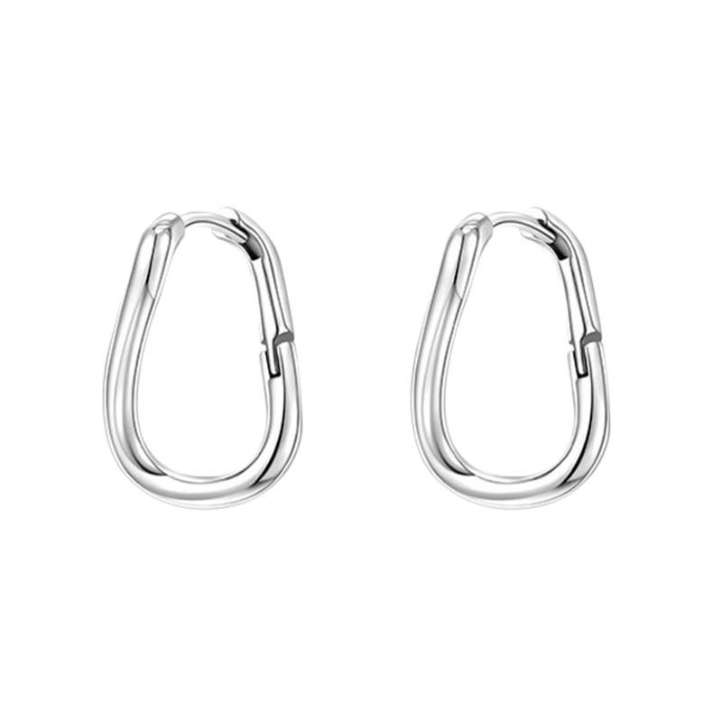 925 Sterling Silver Minimalist Irregular Geometric Hoop Earring 60200297