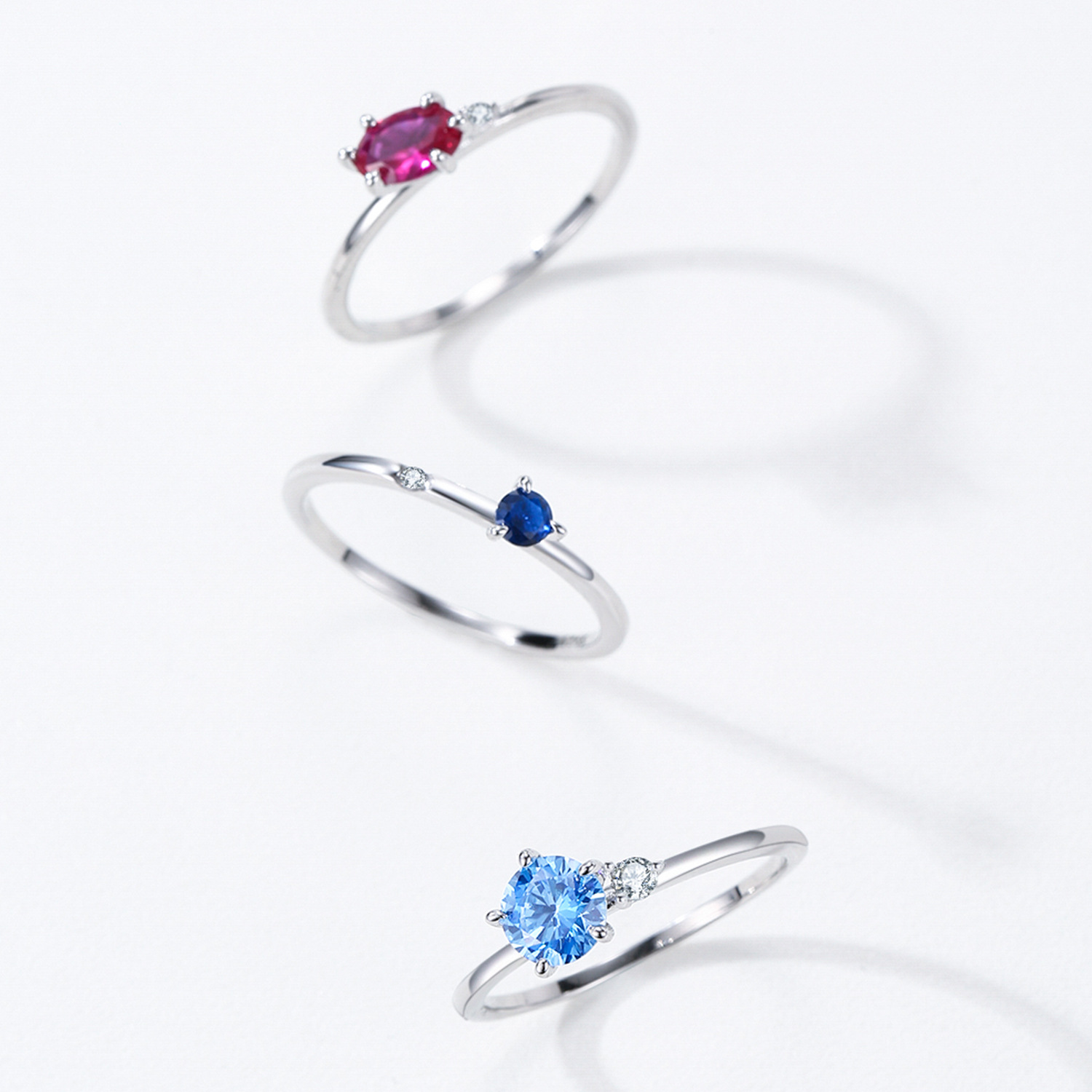 These wholesale 925 sterling silver sapphire zircon rings feature a sleek minimalist design with a vivid blue zircon centerpiece and a clear accent stone. Made from high-quality S925 silver, each ring offers lasting shine and comfort. Its refined simplicity and elegant color make it a popular choice for jewelry retailers, boutiques, and online stores looking for best-selling classic designs in their silver jewelry collection.