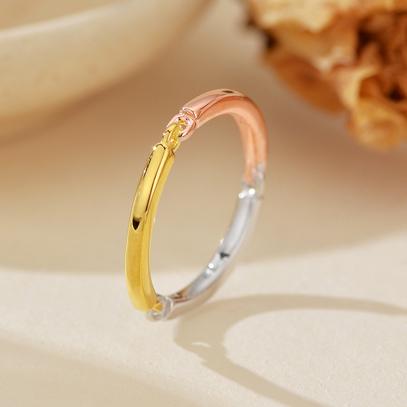 Source a trending, highly versatile inventory item with our 925 Sterling Silver Minimalist Tri-Tone Band Ring. This design is highly marketable, capitalizing on the popularity of minimalist jewelry and the highly versatile multi-tone aesthetic, which is essential for customers who enjoy wearing mixed metals. The integration of silver, 18K yellow gold, and rose gold plating maximizes its appeal across different style preferences. Crafted from authentic S925 sterling silver, this piece offers reliable quality and strong retail margins. These are excellent, reliable, fast-selling staple pieces for bulk purchase. Available for competitive wholesale pricing.