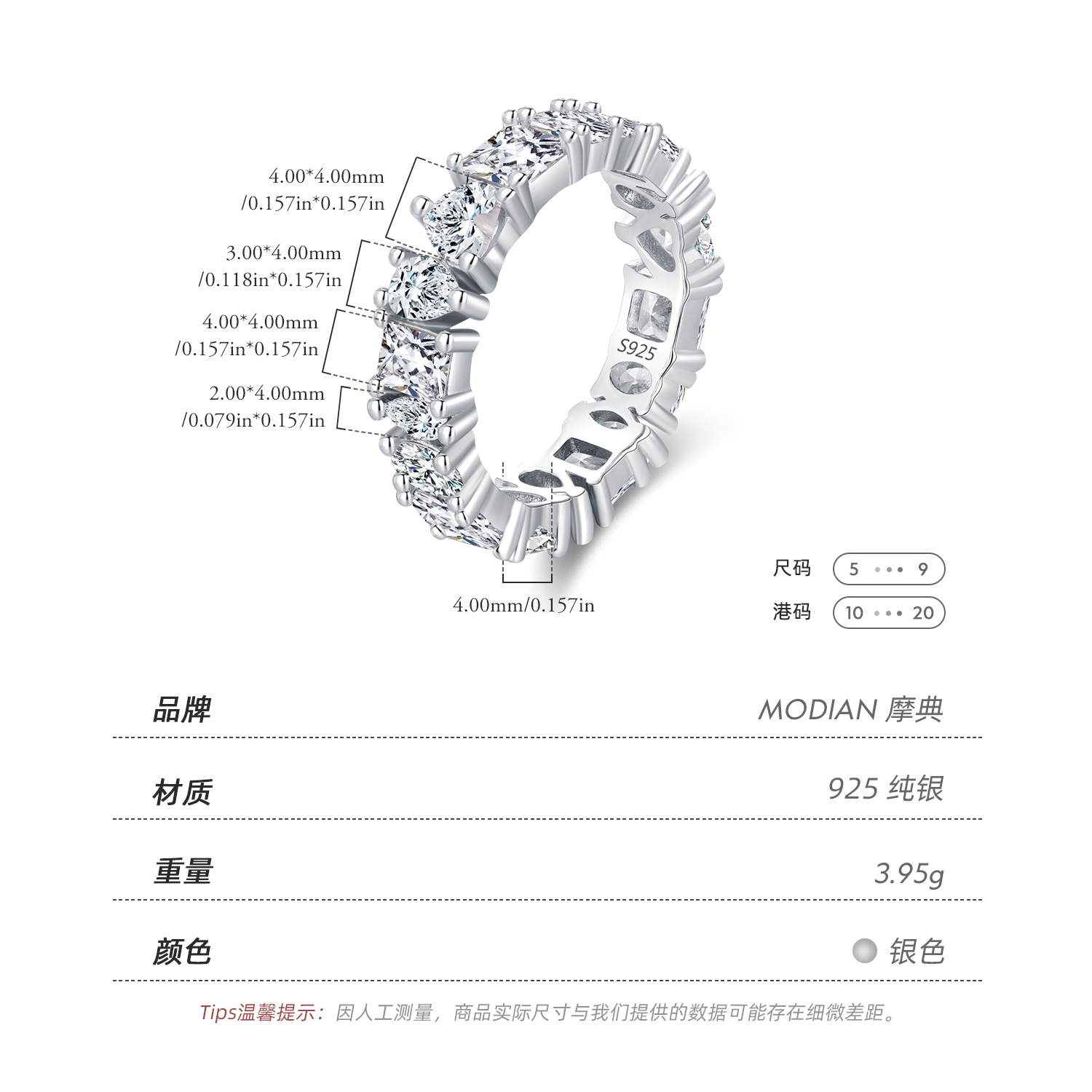 Material: 925 Solid Sterling Silver, 5A Cubic Zirconia