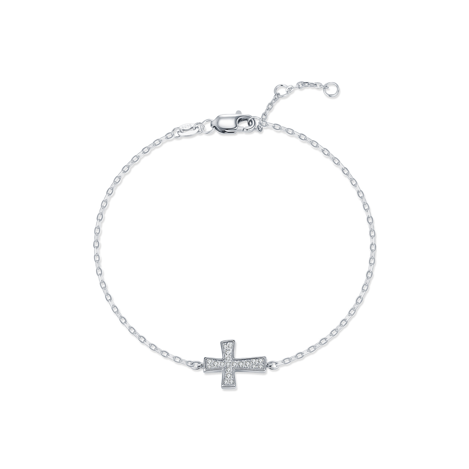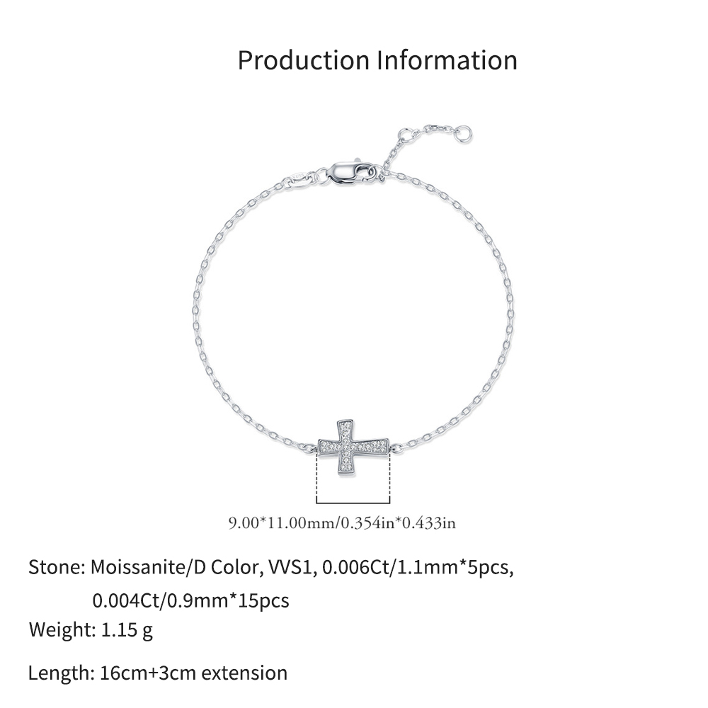 925 Sterling Silver Moissanite Cross Pave Bracelet 110400018