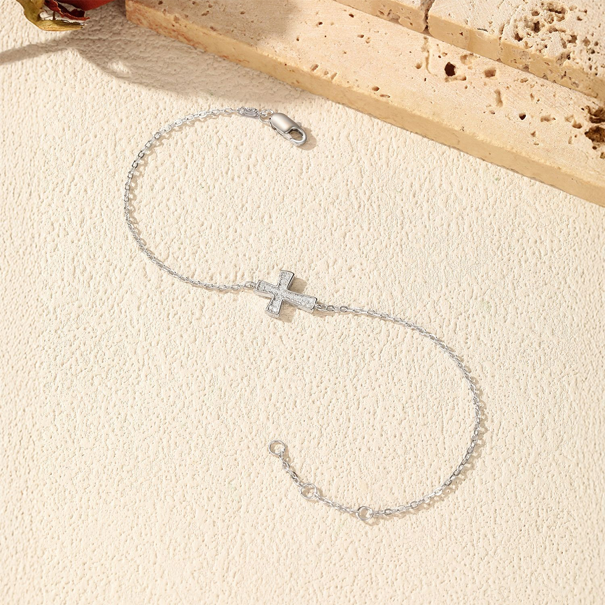 Capitalize on the enduring popularity of religious jewelry with a contemporary twist in our Wholesale 925 Sterling Silver Sideways Cross Pave Bracelet. The "Sideways Cross" design remains a fashion favorite, offering a subtle, stylish way to wear a symbol of faith that appeals to younger demographics. Filled with brilliant pave-set Moissanite, this SKU upgrades the standard silver cross bracelet with superior sparkle and perceived value. Manufactured from solid S925 sterling silver, it is an ideal addition to gift and daily wear collections.