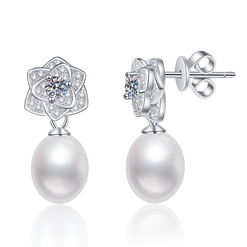 925 Sterling Silver Moissanite Fresh Water Pearl Stud Earring 40500066