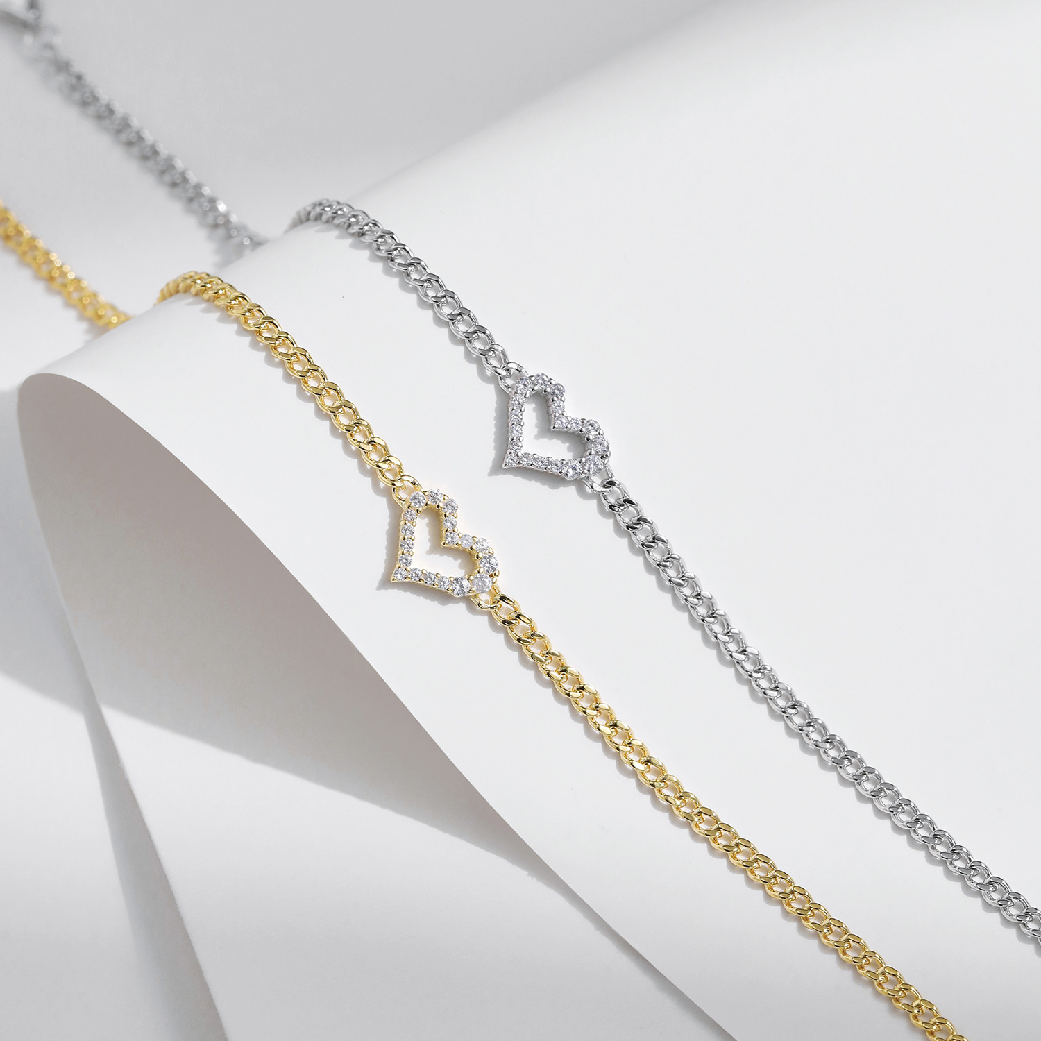 925 Sterling Silver Moissanite Heart Bracelet 110400006