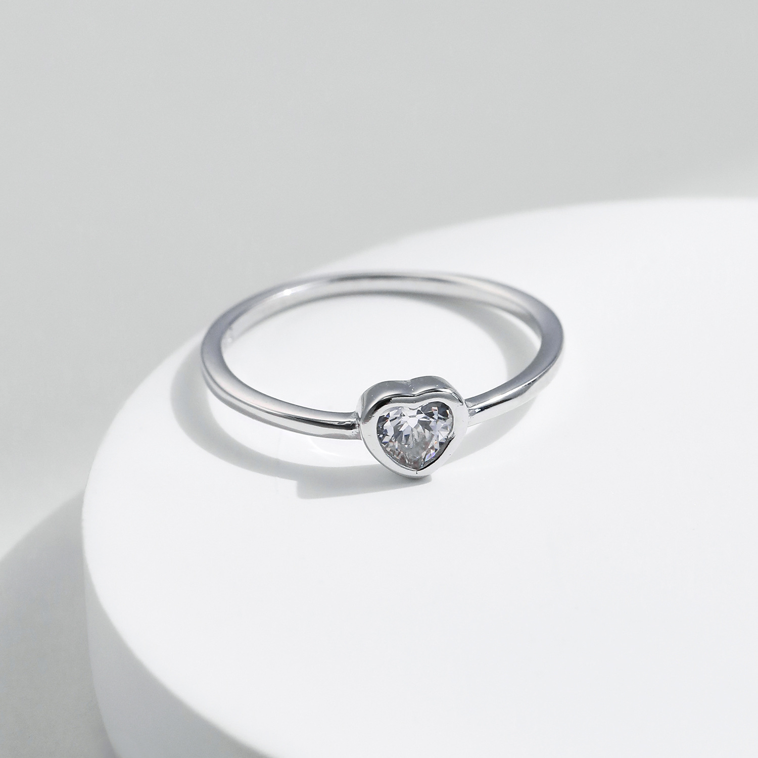 925 Sterling Silver Moissanite Heart Ring 110200029