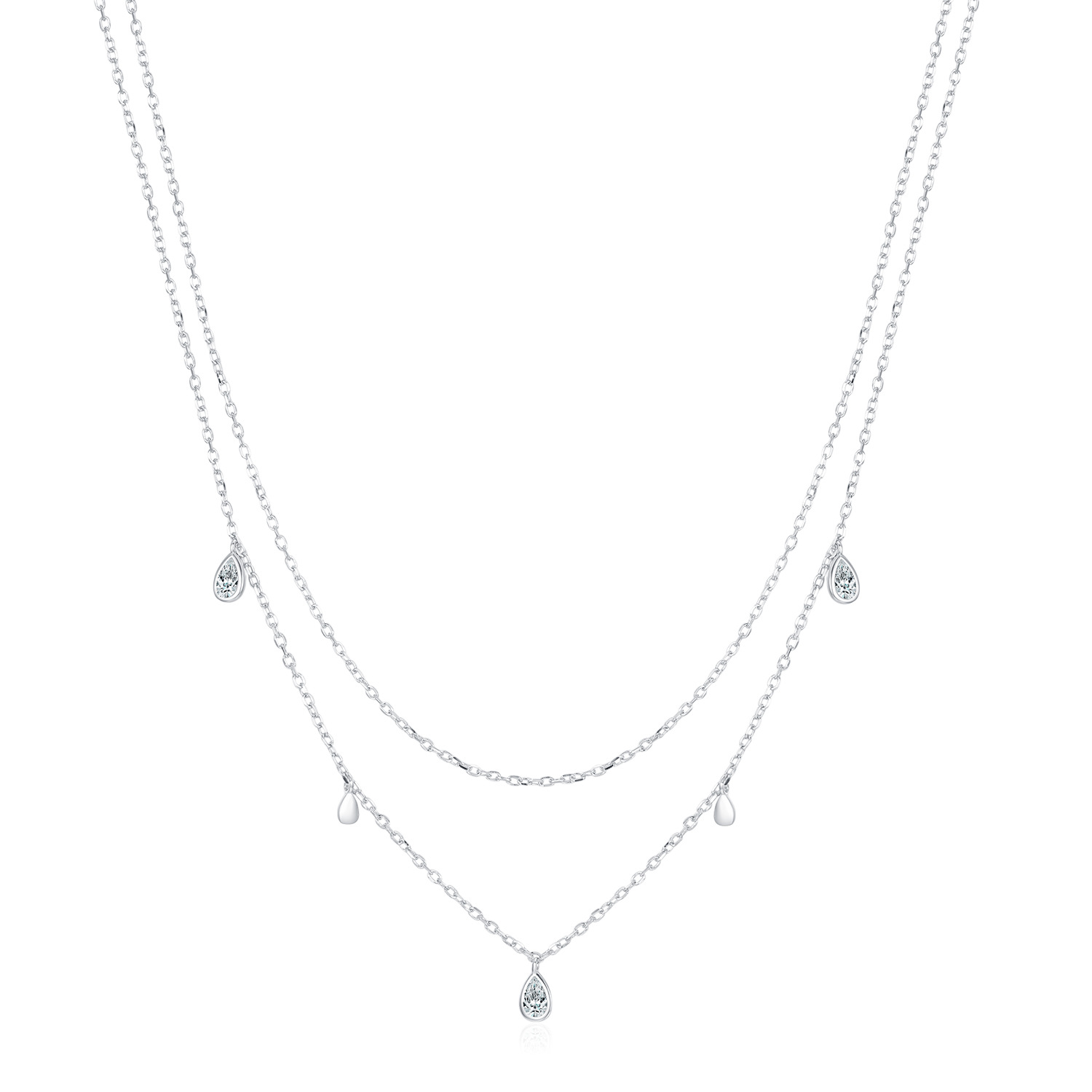 925 Sterling Silver Moissanite Layered Teardrop Charm Necklace 110300012