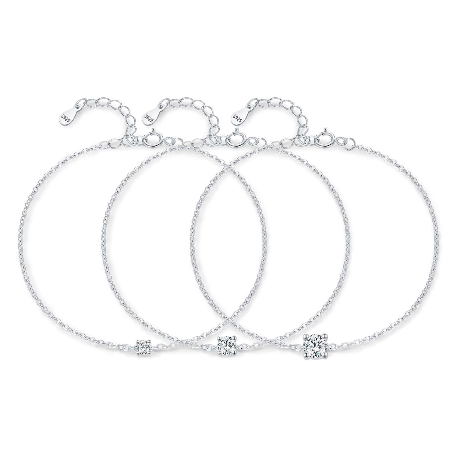 Dimension: 16cm+3cm extension, Main Stone D-VVS1 Moissanite 3mm/0.1Ct, 4mm/0.3Ct, 5mm/0.5Ct