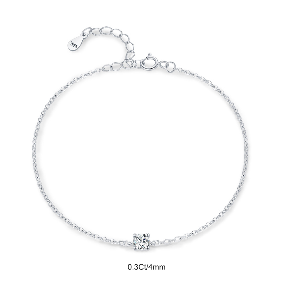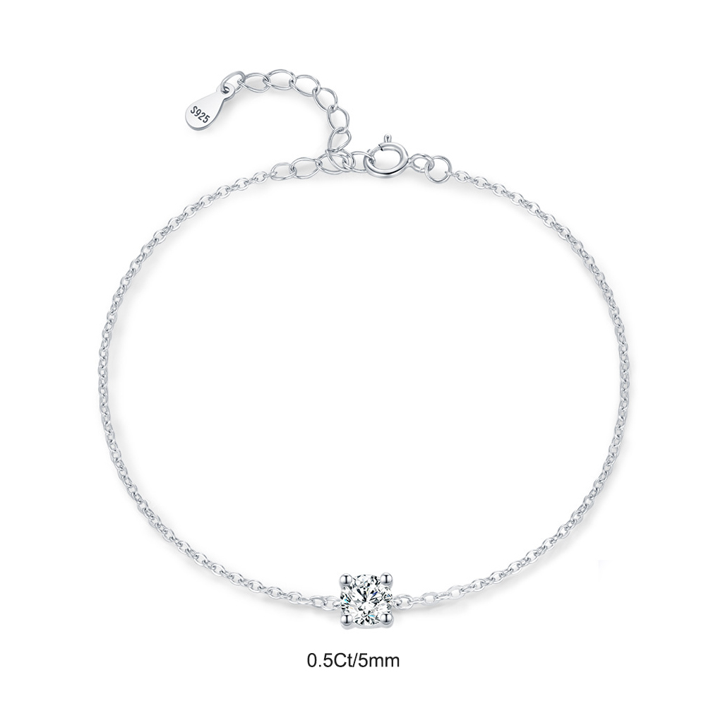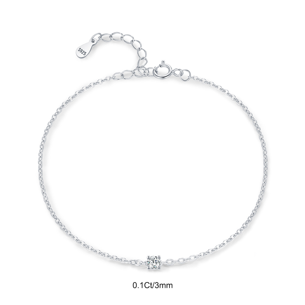 Elevate your everyday elegance with this refined 925 sterling silver bracelet, featuring a sparkling 0.1Ct/0.3Ct/0.5Ct moissanite solitaire at the center. Its minimalist chain design embodies modern sophistication, making it perfect for layering or wearing alone as a statement of timeless beauty. Crafted for durability and brilliance, this lightweight bracelet is ideal for daily wear, special occasions, or as a meaningful gift for birthdays, anniversaries, or Valentine's Day.
