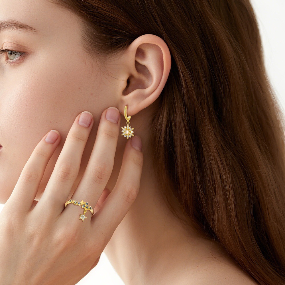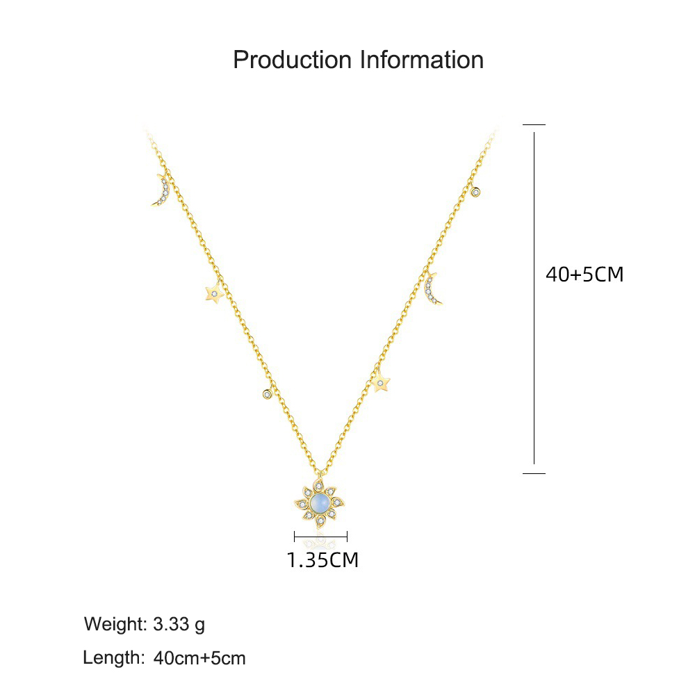 Capitalize on the evergreen "Celestial/Galaxy" trend with our Wholesale925 Sterling Silver Moonstone Star Necklace Earring Ring Set . This comprehensive SKU offers high retail value by combining multiple best-selling elements: a "Layered"necklace with "Sun, Moon, and Star" motifs, paired with both stud and drop earrings and an open ring. The use of "Synthetic Moonstone" provides a high-end iridescent look at an accessible price point. Manufactured from solid S925 sterling silver, this set is designed to drive higher Average Order Value (AOV) through bundled sales.