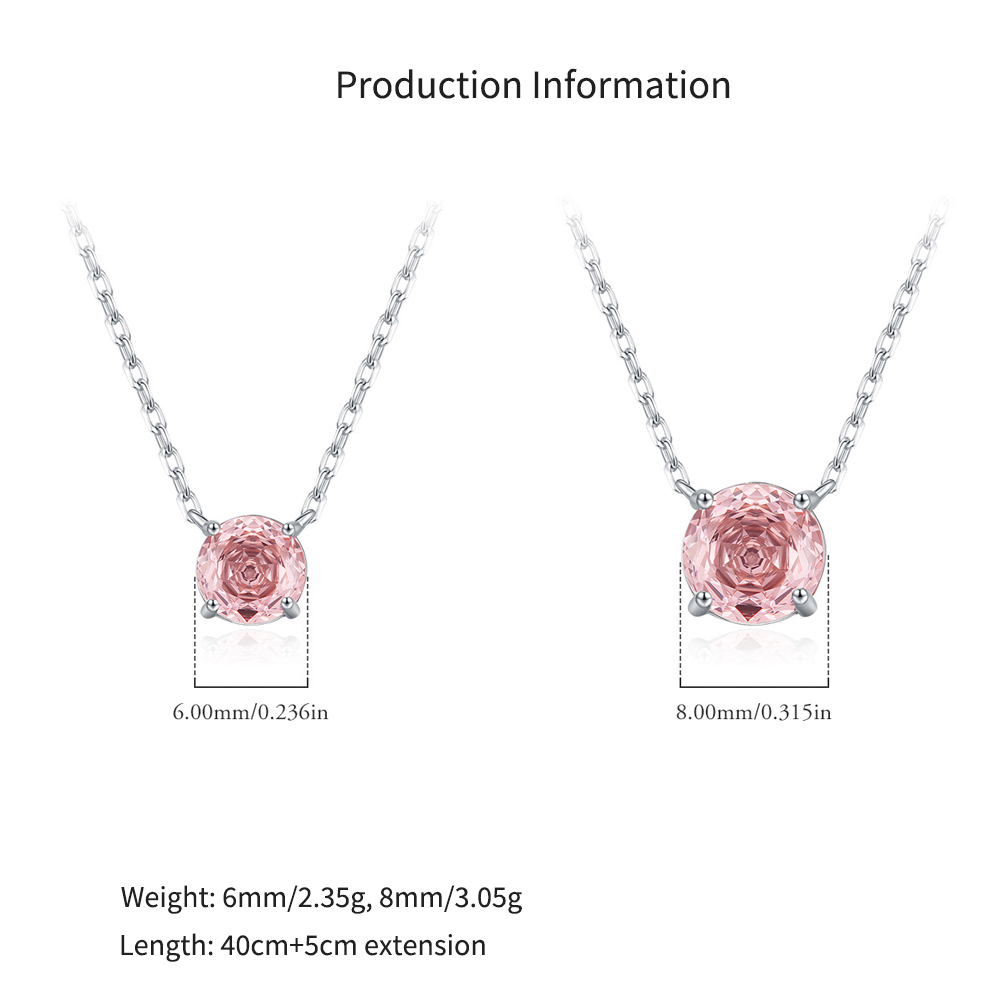 925 Sterling Silver Morganite Pink Rose Cut Necklace 80200525