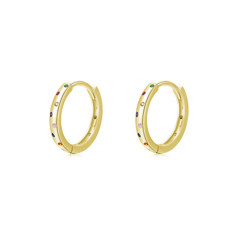 Stock the essential "Everyday Hoop" with a colorful twist with our Wholesale 925 Sterling Silver Multi-Color Zircon Huggie Hoops. Huggie hoops are a perennial best-seller, and this SKU adds value with vibrant "Multi-Color Zircons". The "Simple/Round" design ensures broad appeal across demographics, making it a "Versatile" (百搭) staple for any jewelry retailer. Manufactured from solid S925 sterling silver, these earrings offer a high-quality, hypoallergenic option at a competitive price point.