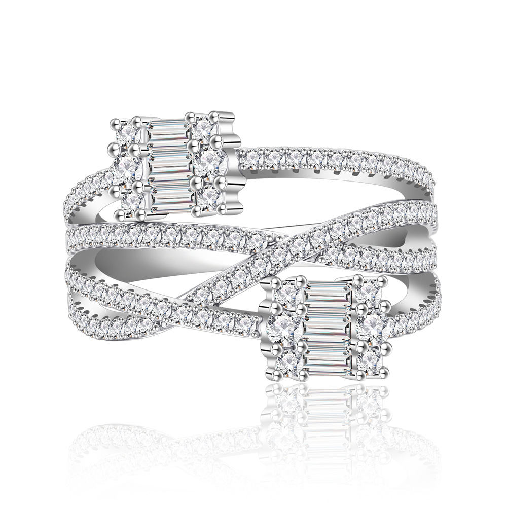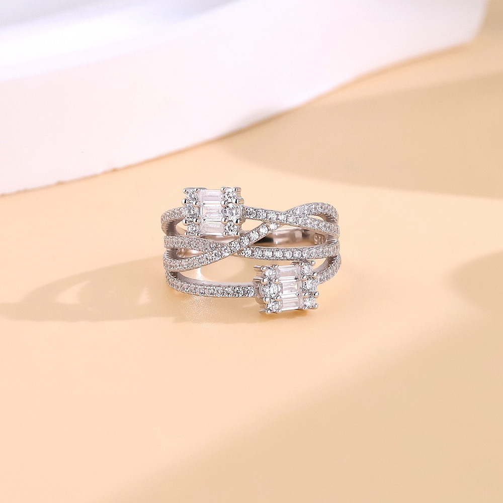 Designed with layered curves and shimmering baguette and round-cut CZ stones, this 925 sterling silver ring makes a bold fashion statement. A perfect blend of modern geometry and luxury sparkle—ideal for parties, evenings out, or elevating daily looks.