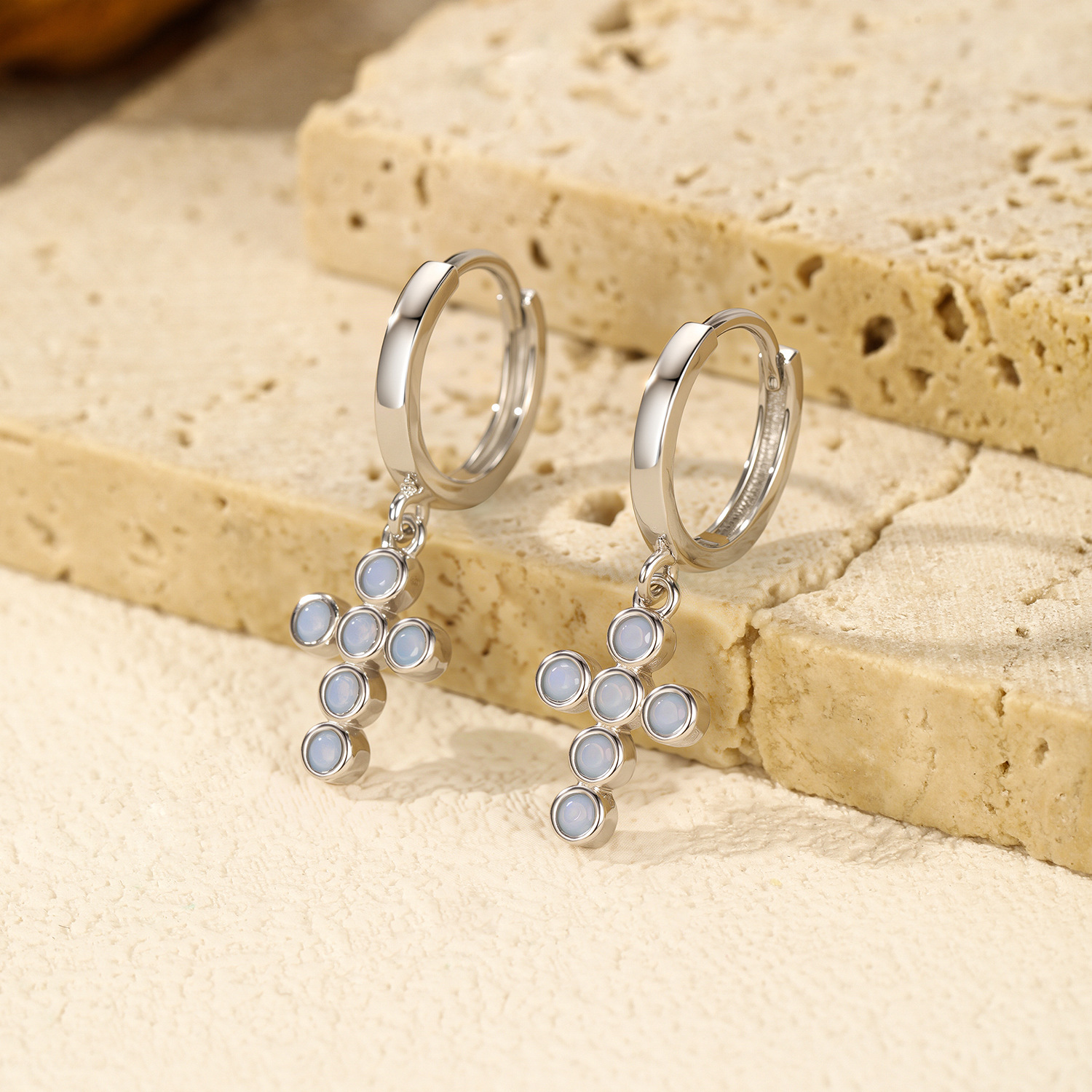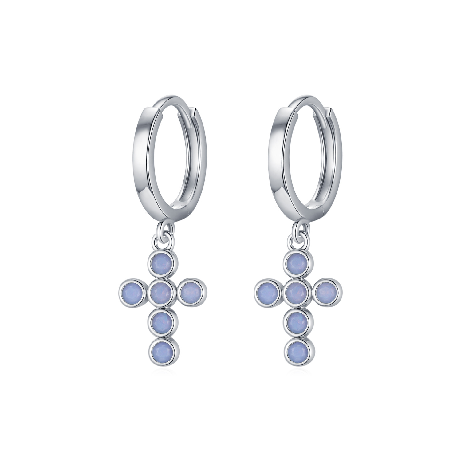 925 Sterling Silver Opal Cross Dangle Earring 60300167