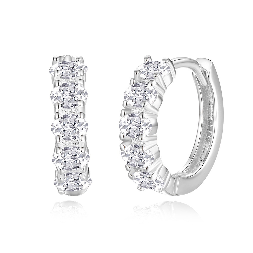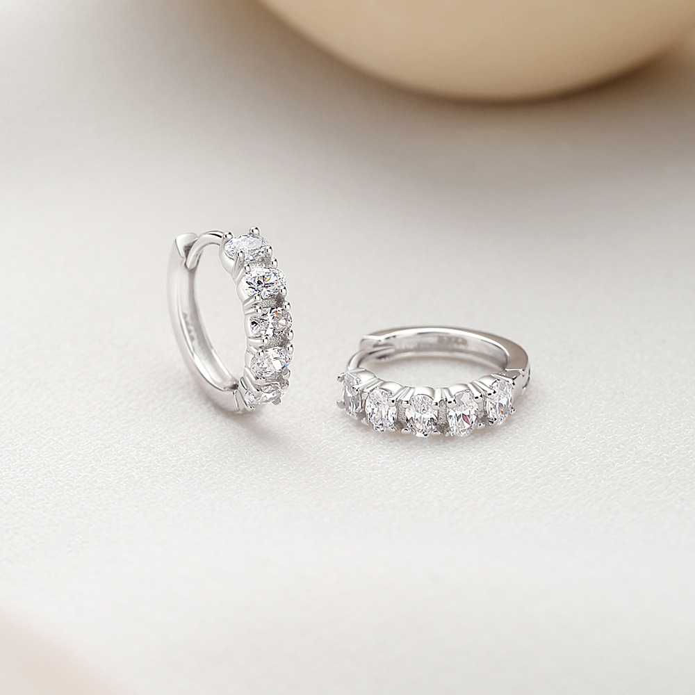 925 Sterling Silver Oval Zirconia Hoop Earring 60200242