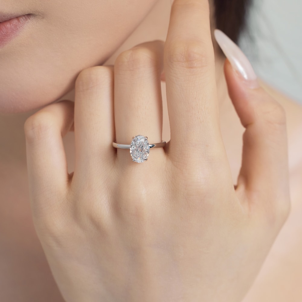 Product: Wholesale 925 Sterling Silver Oval Zirconia Solitaire Ring 70200218.