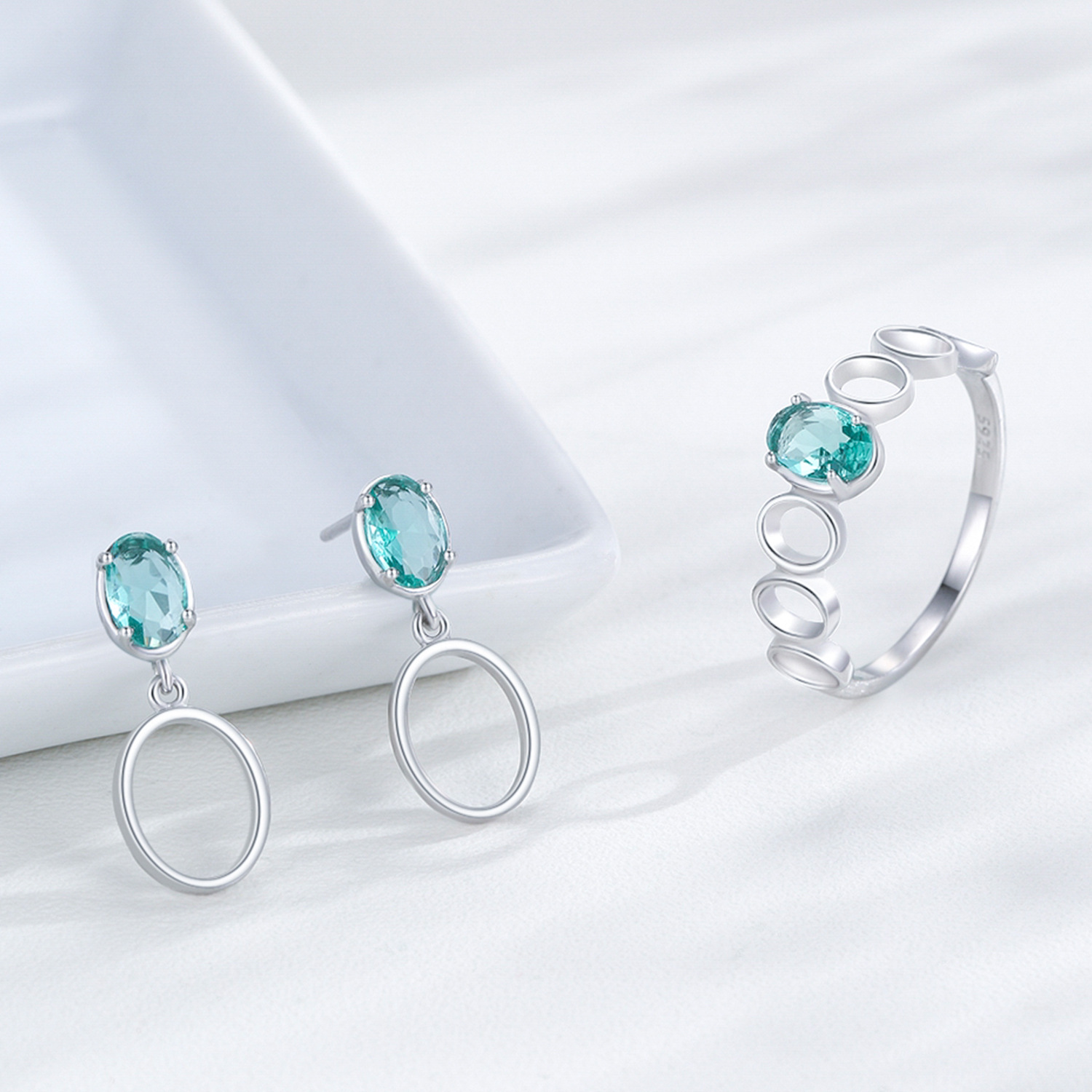Add a pop of ocean-inspired color to your jewelry collection with this 925 sterling silver Paraiba-style gemstone ring. Its open-circle band and luminous blue-green center stone create a refined, contemporary look that appeals to modern fashion lovers. Perfect for retailers, jewelry boutiques, and online sellers looking for eye-catching statement pieces. Available for bulk purchase with premium silver quality and consistent craftsmanship.