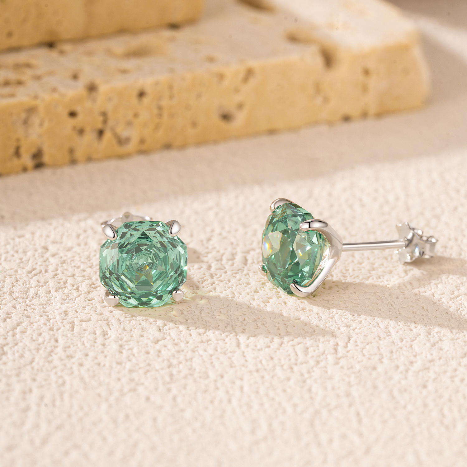 Add a fresh pop of color with these Paraiba green octagon rose cut stud earrings. Crafted in 925 sterling silver, the unique geometric cut enhances the gemstone’s brilliance for a vibrant, luxurious look. Perfect for daily wear, date nights, or special occasions.
