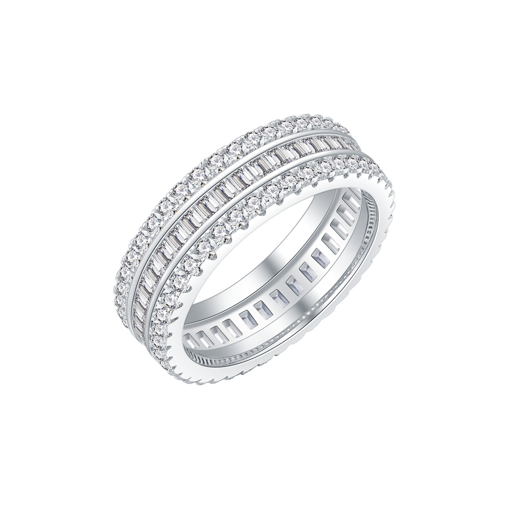 Product: Wholesale 925 Sterling Silver Three Layers Zirconia Band Ring 70100273.